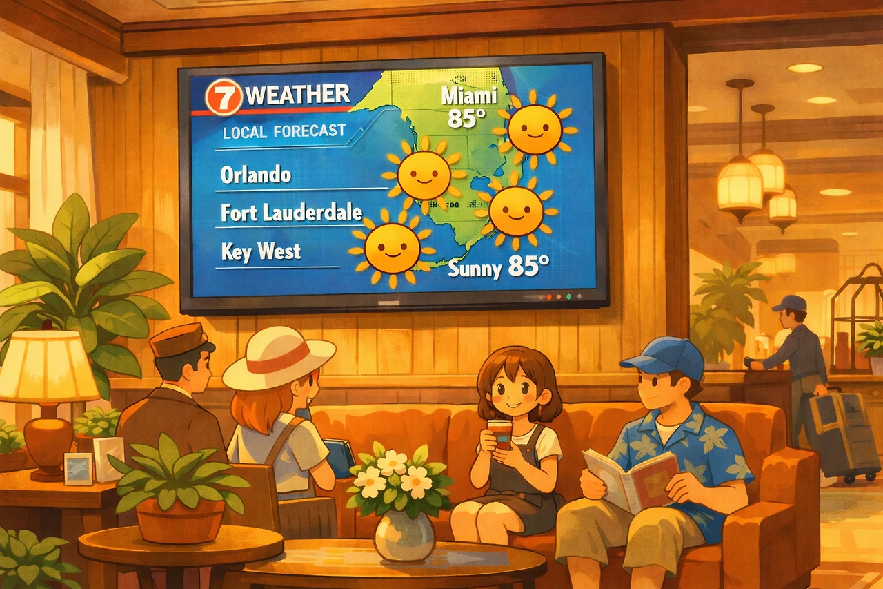 햇살이 가득한 호텔 로비는 그 어느 때보다 밝고 따뜻했다. 벽에 걸린 커다란 TV에서는 일기예보가 한창이었다.