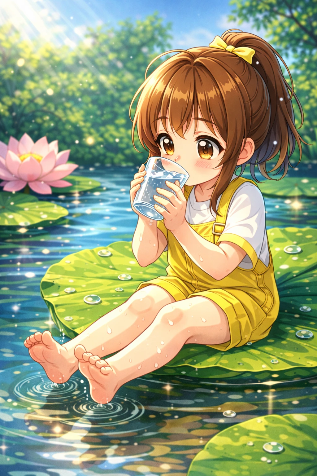 "Frog is drinking water! 이렇게 말하고 이 물을 다 마셔봐."
