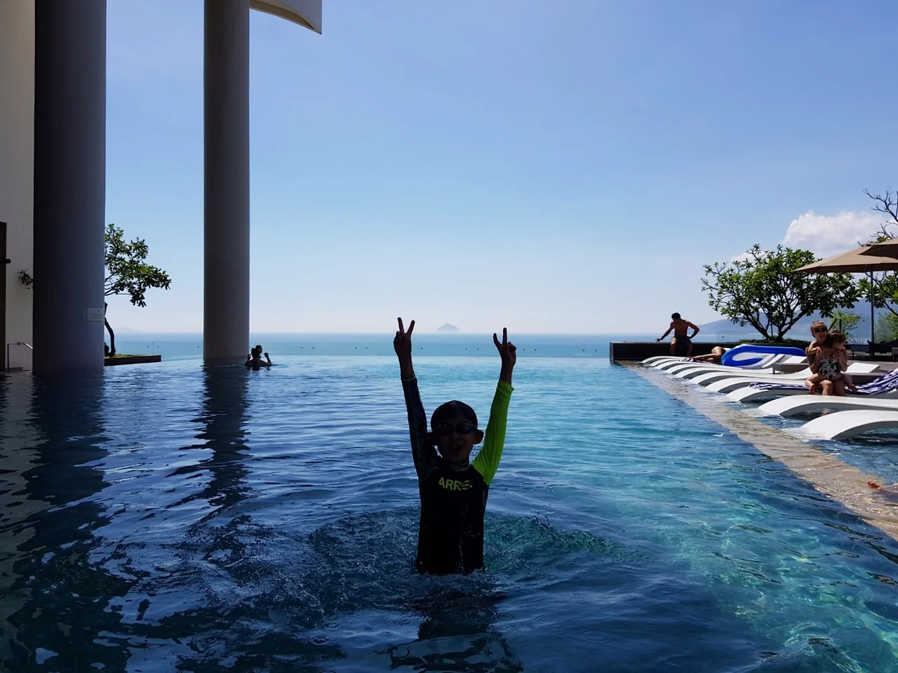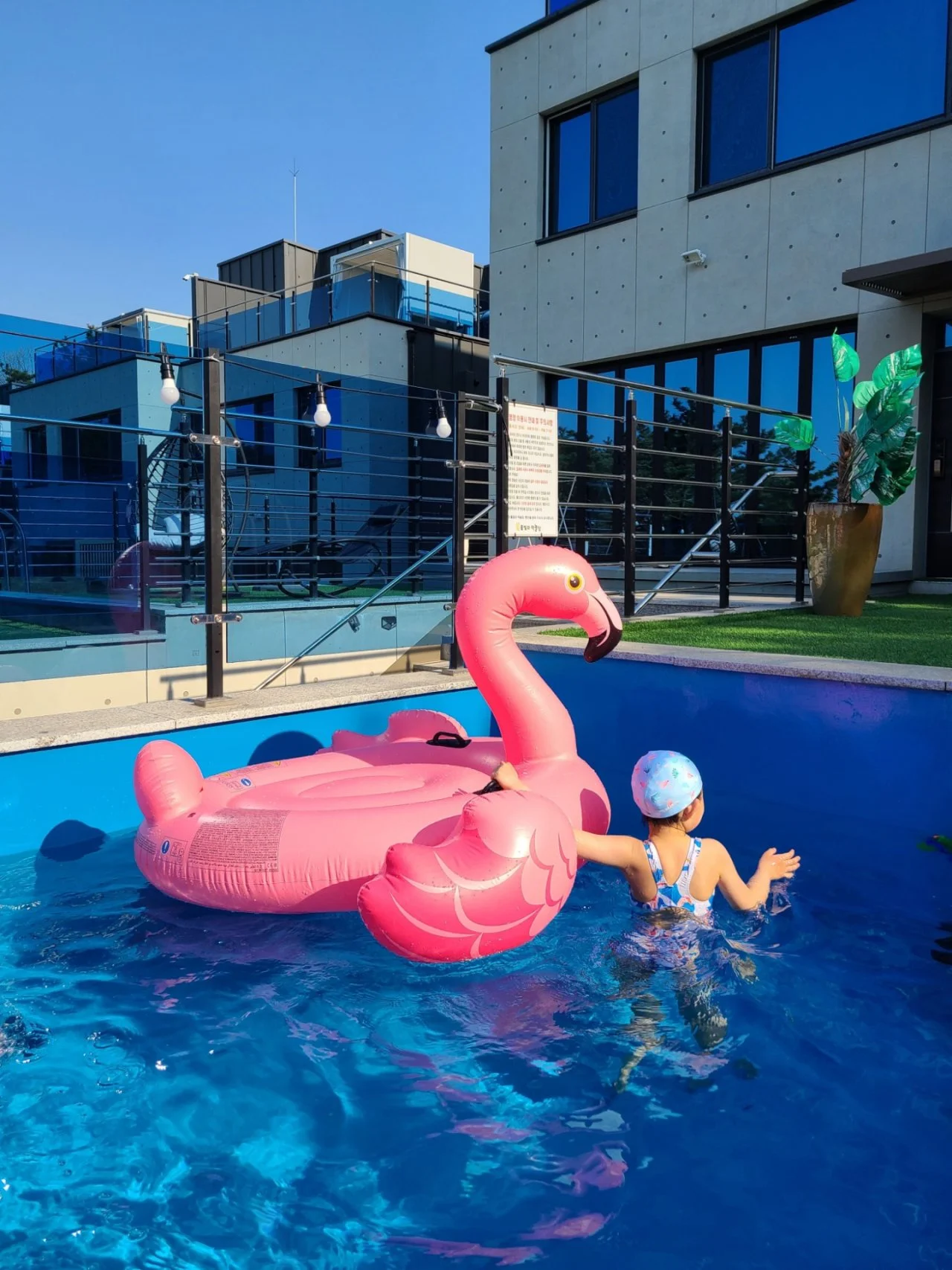 수심이 얕은 풀이긴 했지만 아이들에게 허리까지 오는 높이였다. 내가 아는 녀석은 분명 계단을 붙잡고 천천히 들어가며 온몸에 물을 묻혀야 하는데..
