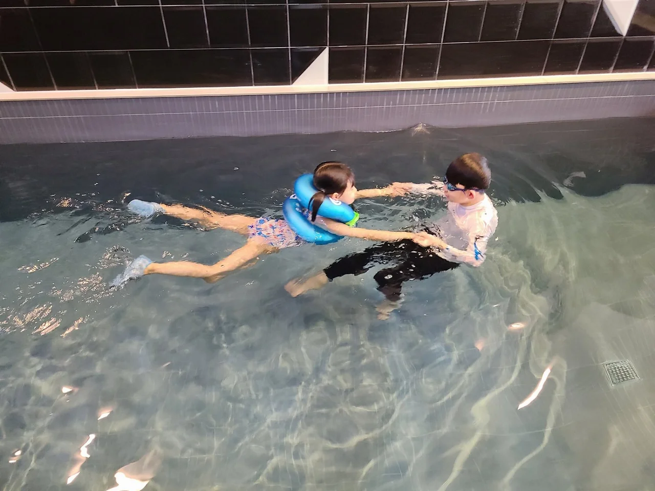 아이와 대화를 나누고 시간을 기다려주고 마음의 준비가 되었을 때, 유아풀장에서 하는 소그룹 수업으로 새로 등록해 줬다.