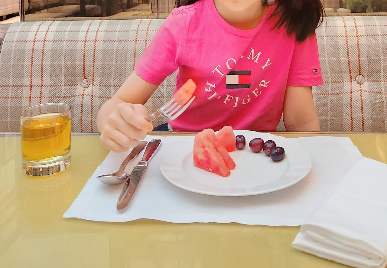 비록 아침으로 수박만 먹더라도 말이다. 가지고 온 사과주스와 포도는 입맛에 맞지 않는지 남기고 수박만 계속 가져다 먹었다.