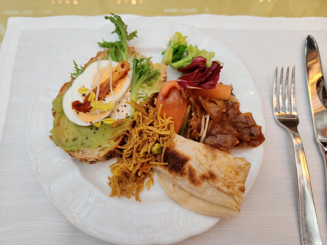 그 덕분에 나 역시 조금 편하게 아침메뉴를 골라본다. 음식의 종류가 다양했지만 소박한 나의 위장을 생각해서 최대한 간소하게 먹고 싶은 것 위주로 담았다.