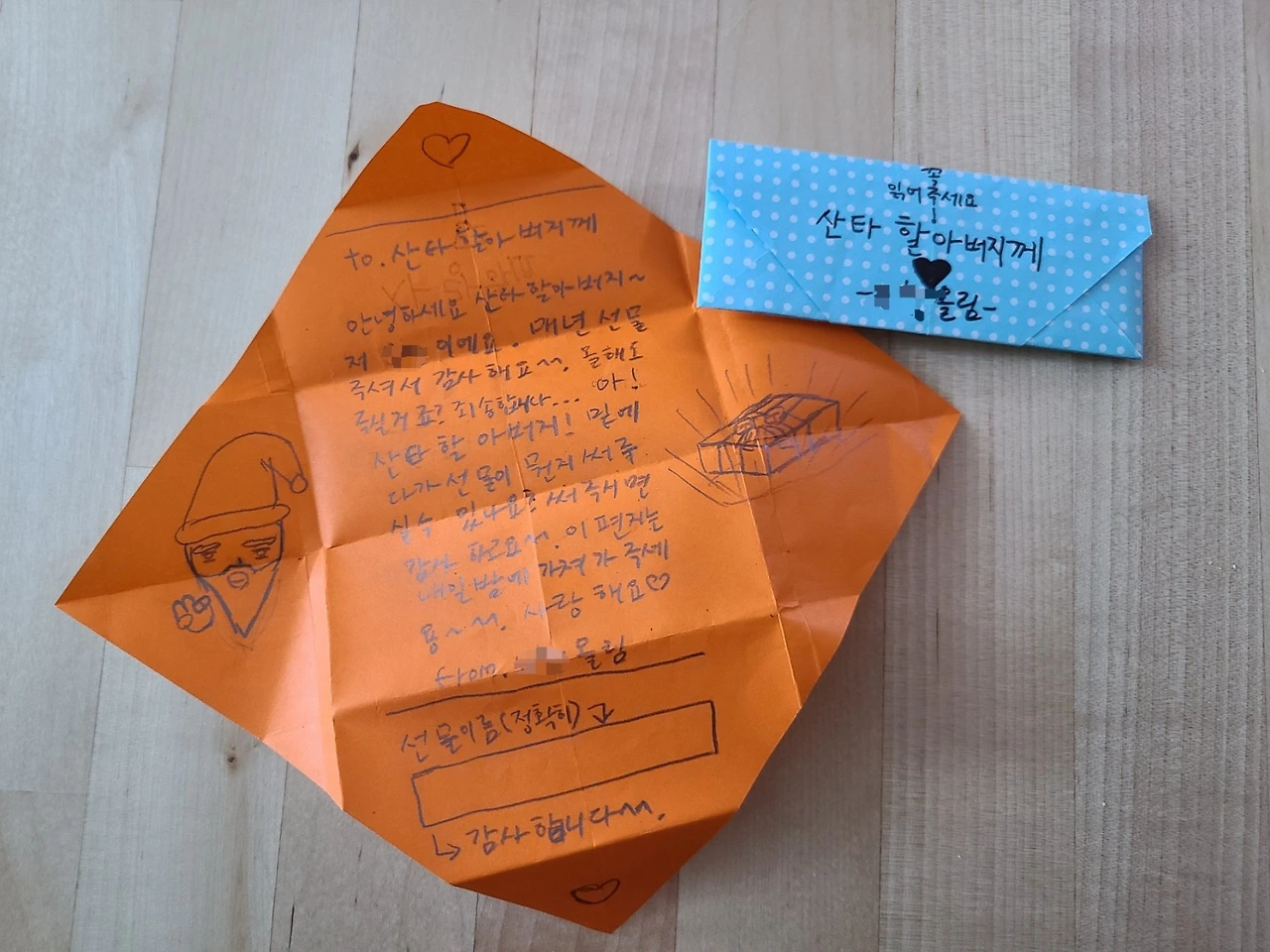 아! 산타할아버지! 밑에다가 선물이 뭔지 써주실 수 있나요? 써주시면 감사하고요.^^