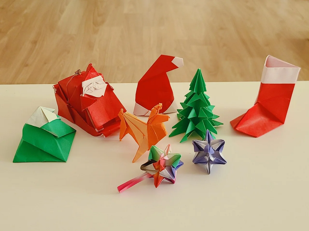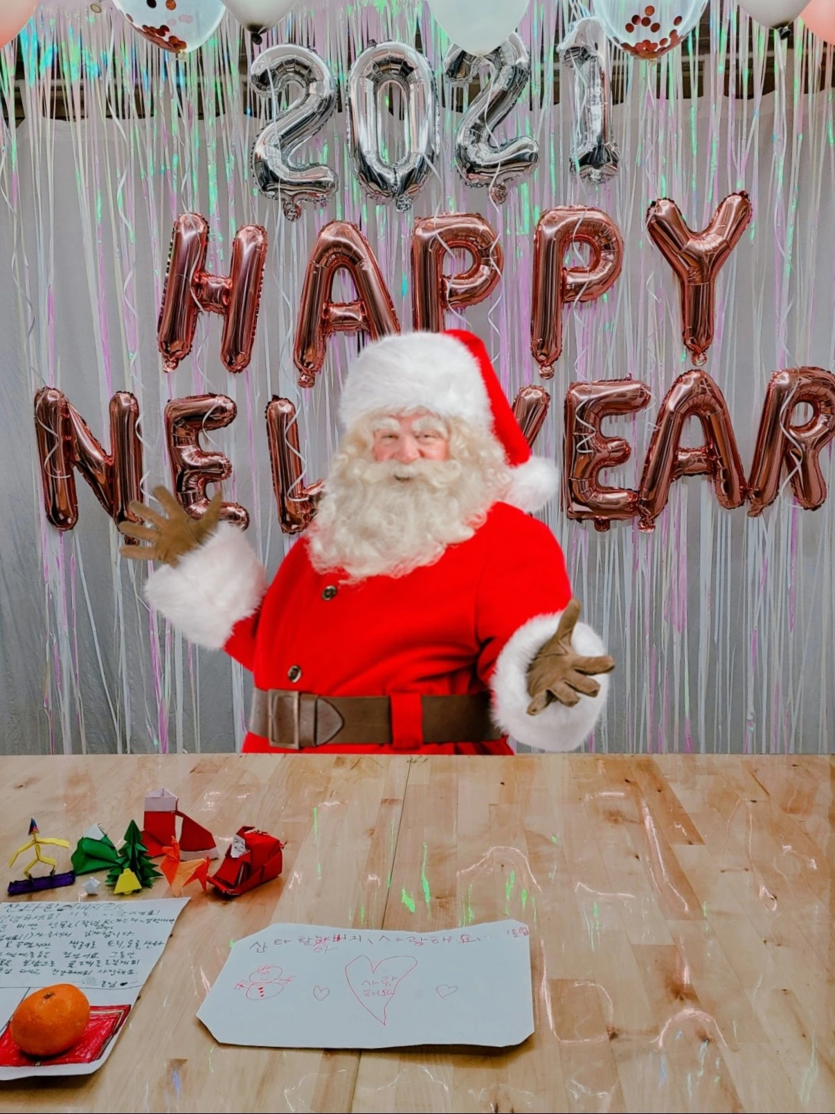 트리는 못 꾸몄지만 색종이로 트리, 순록, 산타할아버지, 썰매, 종 등을 접었어요. 그동안 주신 선물을 보답으로 귤 2개를 드릴게요!