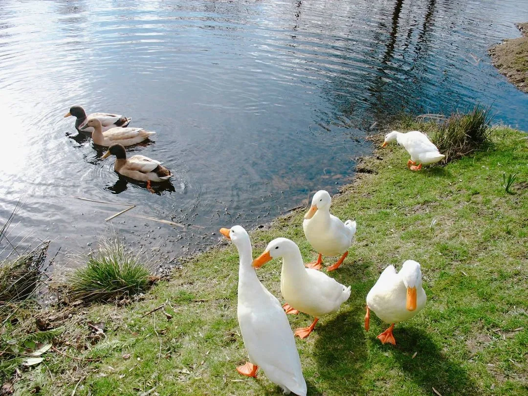 J와 동네에서 가벼운 산책을 했다.자연과 어우러진 작고 조용한 마을이 참으로 좋았다. 좁다랗게 난 오솔길이 꼭 숲 속에 들어온 기분이 들었다. 조금 걷다 보니 호수가 나왔다. 가만히 들여다봤다. 잔잔하게 흐르는 물결에 마음이 차분해졌다. 맑은 햇살에 비친 오리와 거위의 깃털이 유난히 하얗게 반짝였다.반가운 마음에 살며시 다가가 본다.
