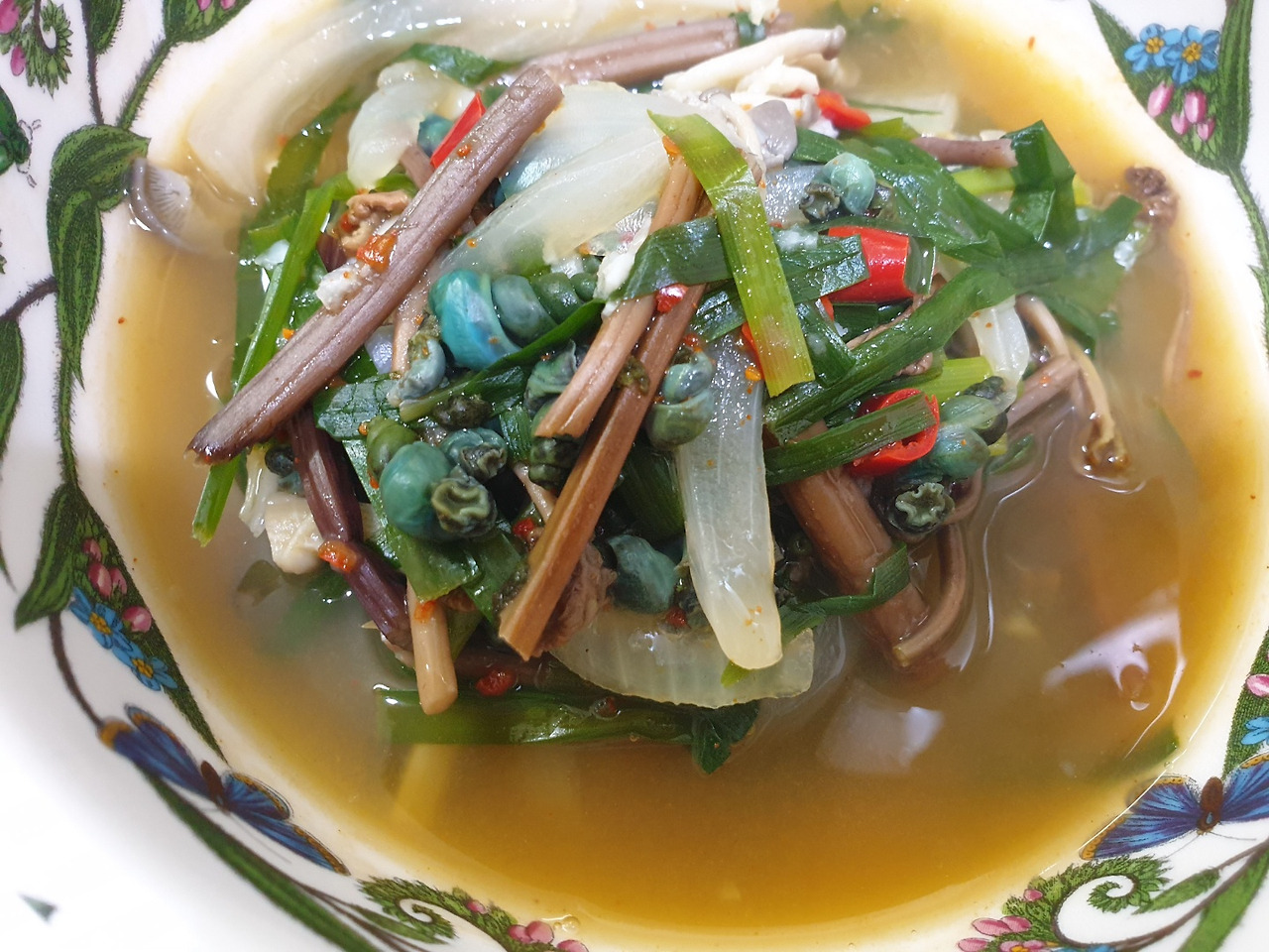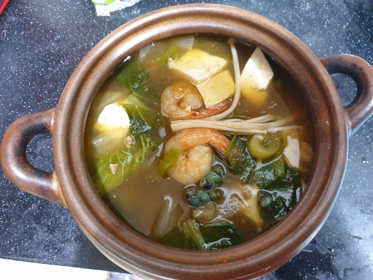 우리 가족은 해산물을 좋아하는 편이다. 나의 주 전공은 해물탕이다. 게, 새우, 미더덕, 여러 종류의 조개, 우렁, 오징어는 우리 냉동실의 기본 재료이다. 해산물을 워낙 좋아해서 해물탕뿐 아니라 게 찌개, 해물 된장찌개, 동태찌개, 해물 순두부, 홍합탕, 조개탕, 문어숙회, 해물 부침개, 오징어국, 다슬기국, 오징어, 낙지, 주꾸미 볶음, 우렁쌈밥 등등을 자주 해 먹는다. 해산물을 좋아하지만 멍게, 해삼 같은 건 또 못 먹는다. 남편이 해산물을 좋아해서 자주 밥상에 올리니 우리 아이들도 어렸을 때부터 맵고 얼큰한 해산물 요리들을 좋아한다.