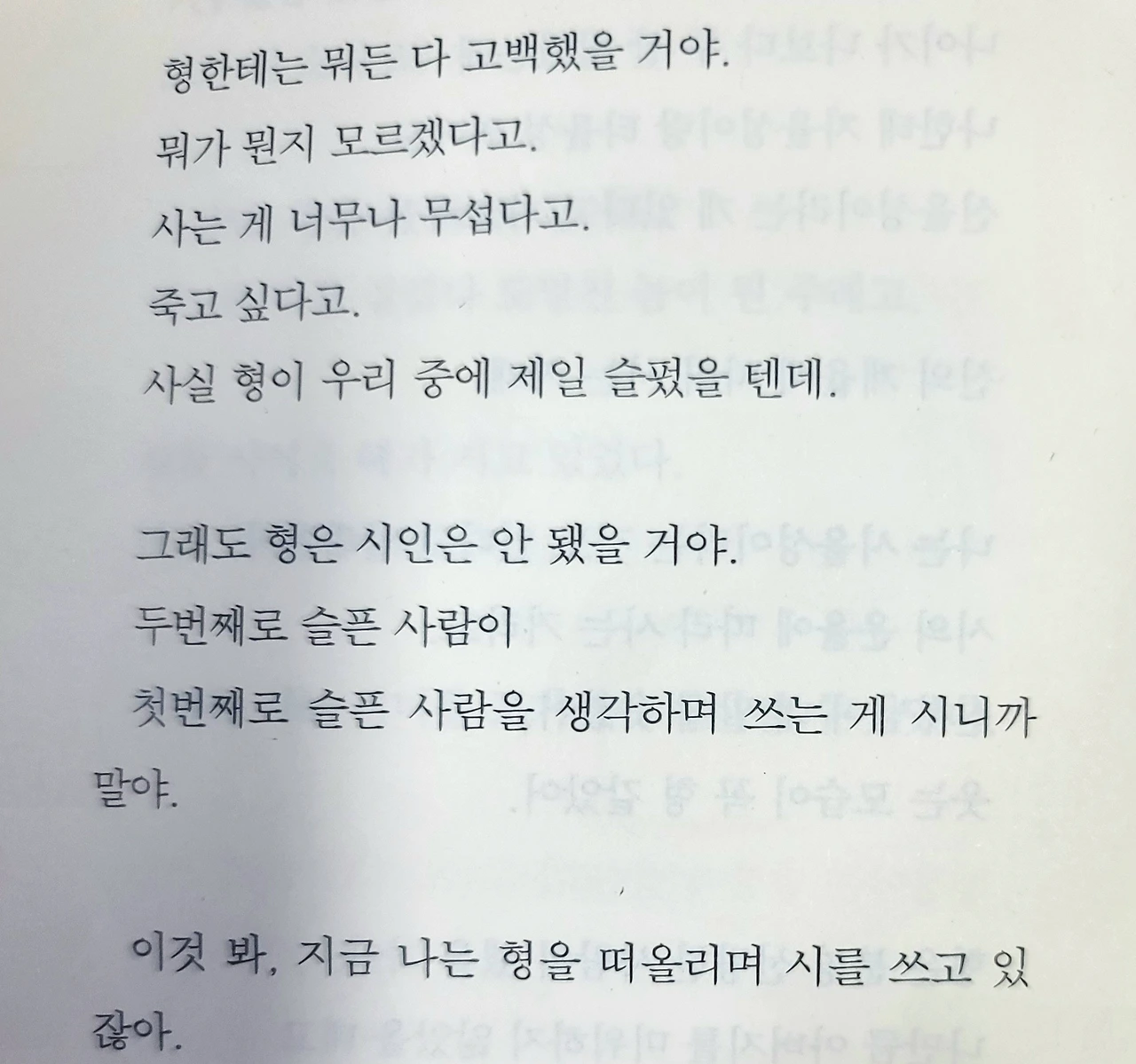 심보선 시인의 <형>이라는 시를 읽을 때마다 어떻게 이렇게 슬픈 시를 쓸 수 있을까 생각했다.
