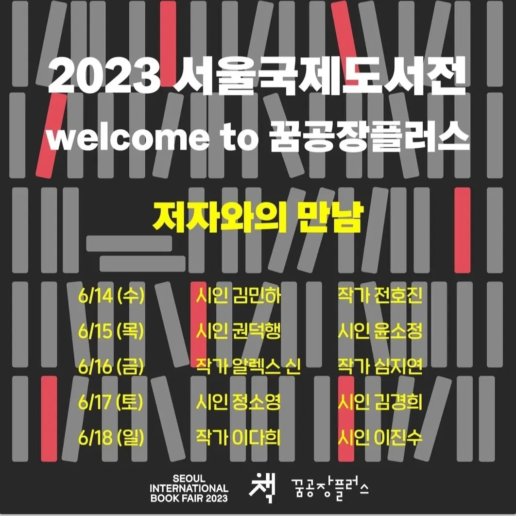 저는 6/15(목)에 꿈공장 플러스 부스에서 독자들과 만날 계획인데요, 관심 있으신 분들은 오셔서 진열된 책도 보시고 책에 대한 이야기도 나눠보구요, 다양한 이벤트들도 즐기셨으면 좋겠습니다.