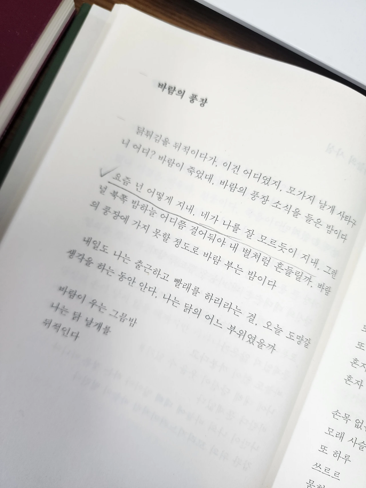 요즘 넌 어떻게 지내, 네가 나를 잘 모르듯이 지내, 그런 널 북쪽 밤하늘 어디쯤 걸어둬야 내 별처럼 흔들릴까, 바람의 풍장에 가지 못할 정도로 바람 부는 밤이다