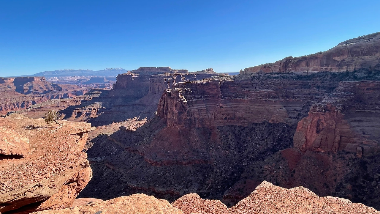 이렇게 심난하고 무거운 몸과 마음으로 차를 타고 달려 온 곳은 캐니언랜즈 국립공원(Canyonlands national park)이었습니다. 이곳은 높은 곳에서 낮은 캐니언들을 바라볼 수 있는 곳이 많았습니다. 힘들던 마음이 웃는 이의 미소 하나로 환해지는 순간처럼 그렇게도 지쳐있었던 마음이 캐니언의 장관을 보고 사라지는 경험을 했습니다. 스트레스가 저절로 날아가는 기분.