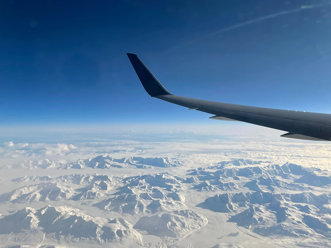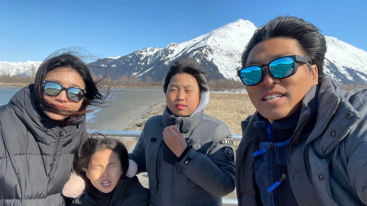 우리 가족이 사는 미국 동부 노스캐롤라이나(North Carolina) 주 샬럿(Charlotte)에서 알래스카(Alaska)주에 있는 앵커리지(Anchorage)를 목표로 비행기를 타고 날아왔습니다. 미국에서 가장 크지만 가장 한적한 주 알래스카에 드디어 입성한 것이죠. 비행기 창밖으로 설산들이 보이시나요? 이곳이 알래스카, 눈의 나라입니다. 겨울왕국에서 보았던 크리스토퍼의 친구 스벤 같이 생긴 순록 동상도 이곳 공항에서 우리를 반겨주었습니다. 4월인데도 공항 문 옆에 쌓여 있는 눈을 보며 눈의 나라에 온 설렘이 가슴 가득 자리 잡았습니다.