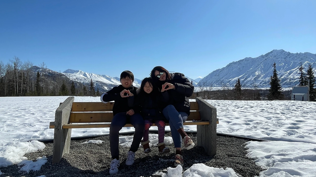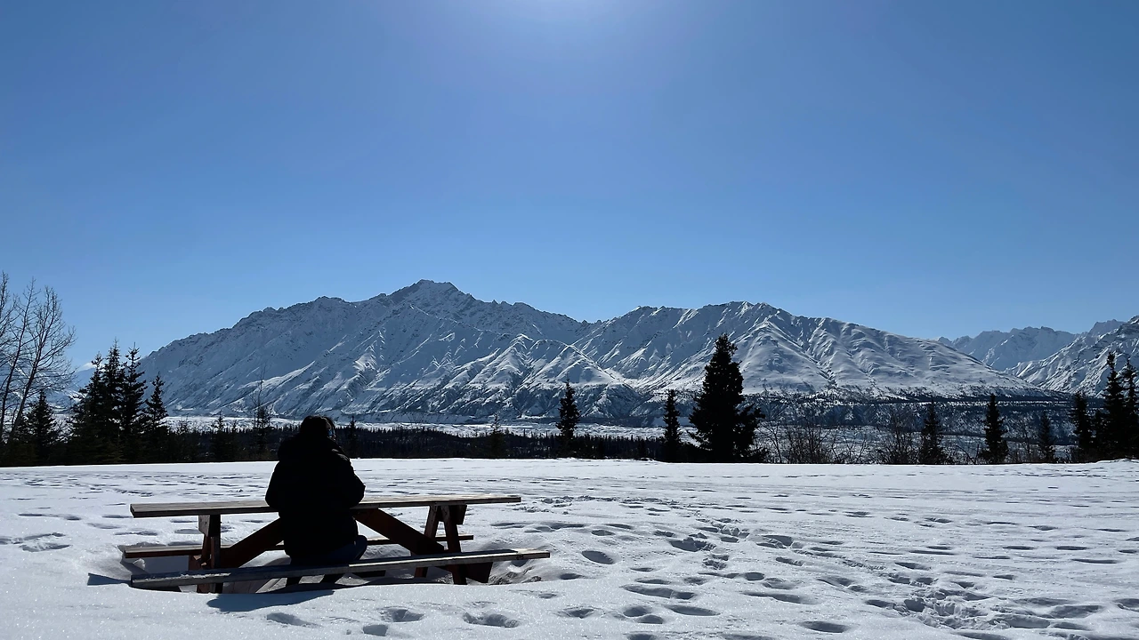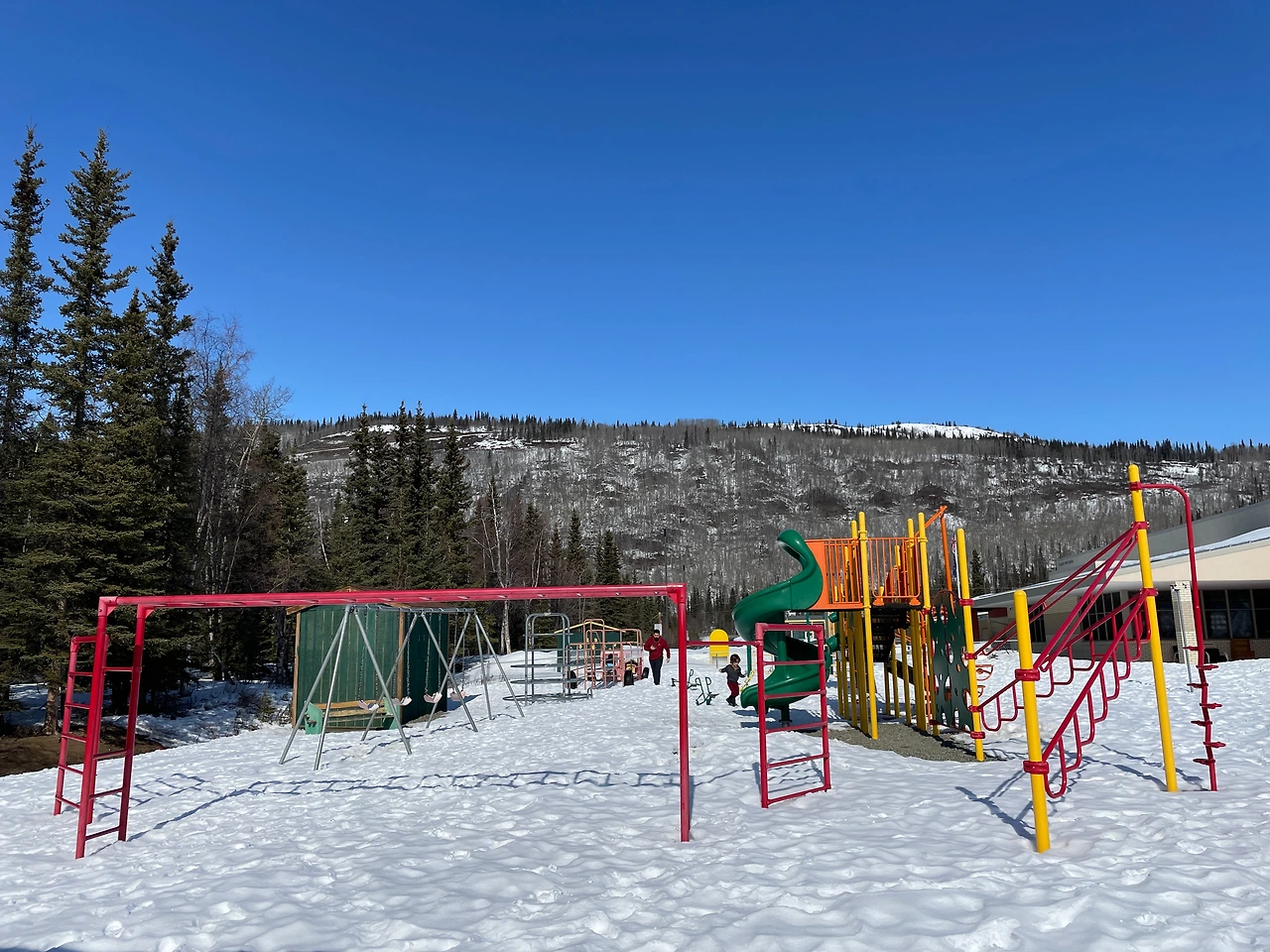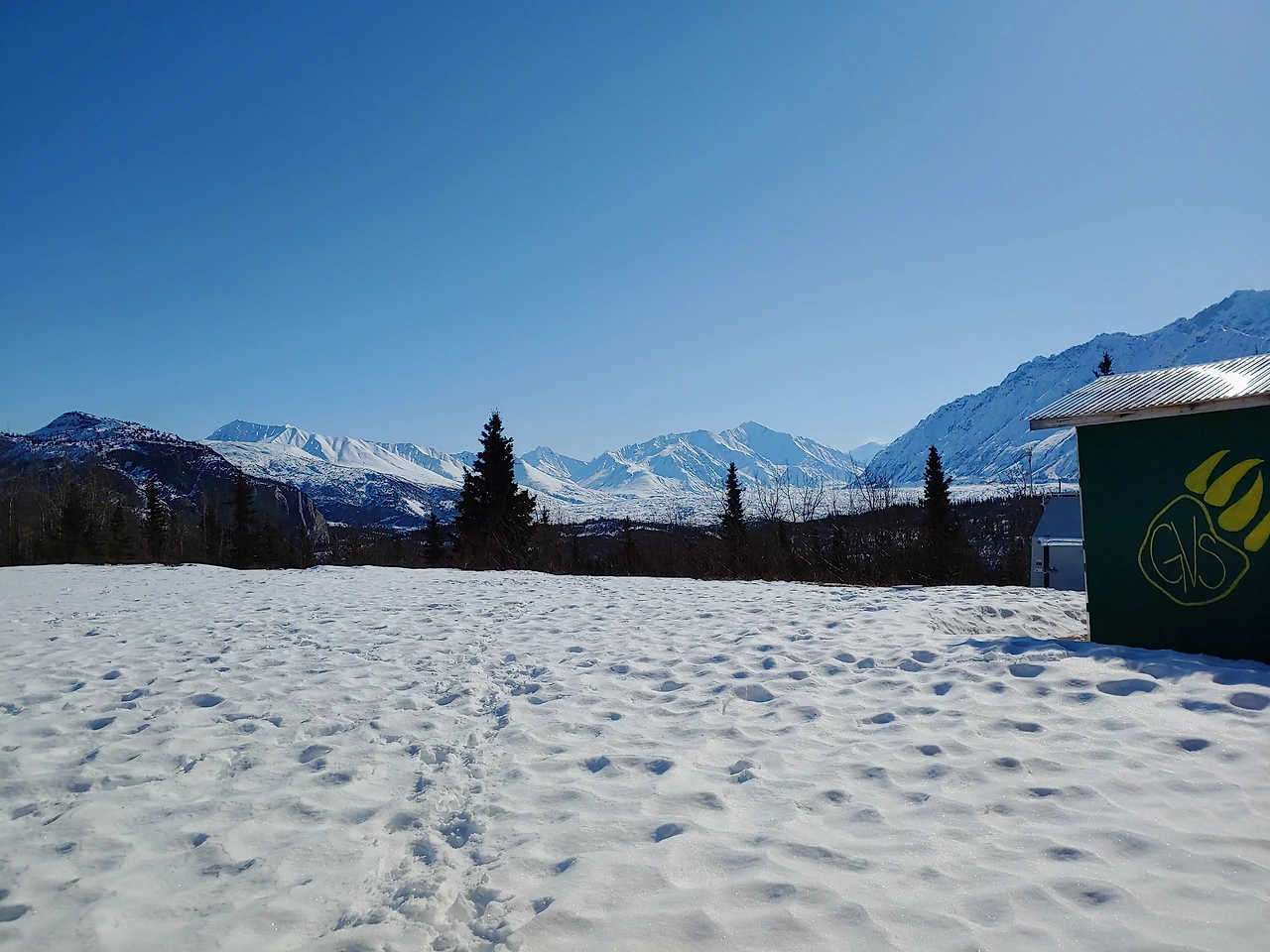 마침 근처 Glacier View school라는 이름을 가진 학교로 향했습니다. 학교 옆에는 항상 놀이터가 있잖아요. 온통 눈밭인 학교 운동장과 놀이터, 확 트인 학교 운동장을 앞에 두고 펼쳐지는 눈으로 덮인 산. 이 모든 것이 생각보다 더 환상적이었어요. 말 그대로 눈의 나라, 겨울 왕국이었죠. 이런 곳에서 학창 시절을 보내는 아이들의 마음은 얼마나 크고 넓게 자라날까요. 그리고 그들이 커서 도시에 나가 산다면 학창 시절이 얼마나 그리울까요. 삶에 지쳐 과거로 돌아가고 싶을 때 제일 먼저 이 설원의 환상적인 풍경이 먼저 생각나지 않을까요. 저 역시도 삶이 힘겨울 때 잠시 눈을 감고 이곳으로 시간여행을 올 것만 같습니다. 정말 저는 눈을 감고 알래스카를 생각하면 떠오르는 장면이 이 학교 앞마당에서 본 눈밭과 설산입니다.