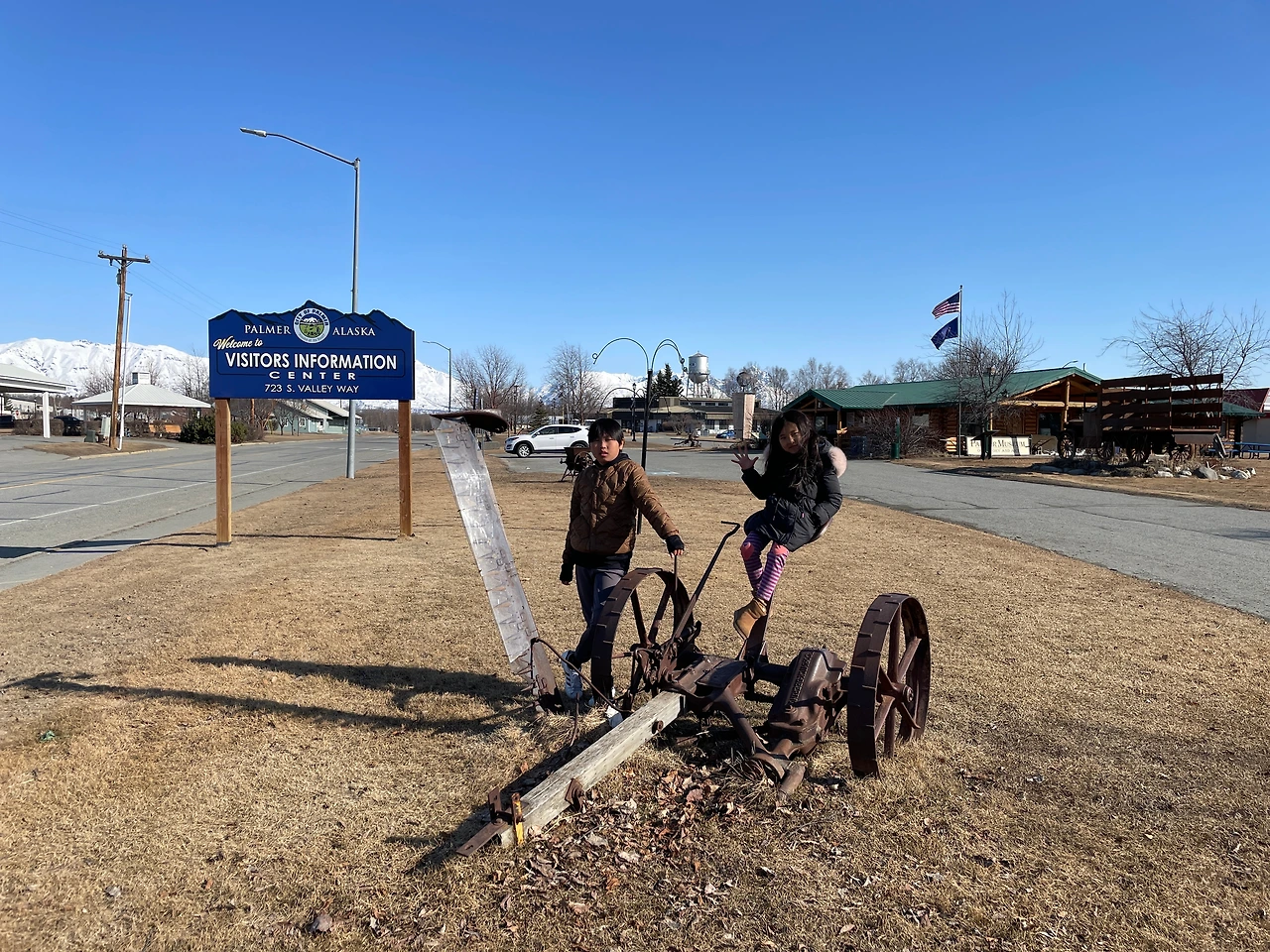 팔머(Palmer)라는 지역은 알래스카 이주민들이 텐트를 치고 지내면서 밭을 일군 농민들의 힘겨운 역사를 담고 있는 곳이라고 합니다. 우리는 팔머비지터센터(Palmer visitor center)에 들렀습니다. 녹슬고 오래된 농기구들에서 척박한 땅에서 생존을 위해 싸워야 했던 사람들의 손길이 느껴졌습니다. 언 땅들을 갈면서 얼마나 많이 입김으로 차갑게 언 손들을 녹였을까요. 따뜻한 고향이 또 얼마나 그리웠을까요. 이런 곳에 살게 되면 인간의 한계를 절감하고 자연에 꼼짝없이 순응할 수밖에 없을 것 같지만 사람들은 이런 곳에서도 도전을 선택했습니다. 그들은 첫 수확물을 보며 어떤 마음이 들었을까요. 춥고 척박한 이곳에서 희망을 품고 하루하루 견디며 농사지었을 그 마음을 배우고 가고 싶었습니다. 꾸준한 노력이 이루는 기적을 말이죠.