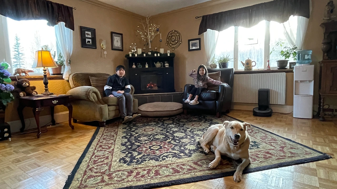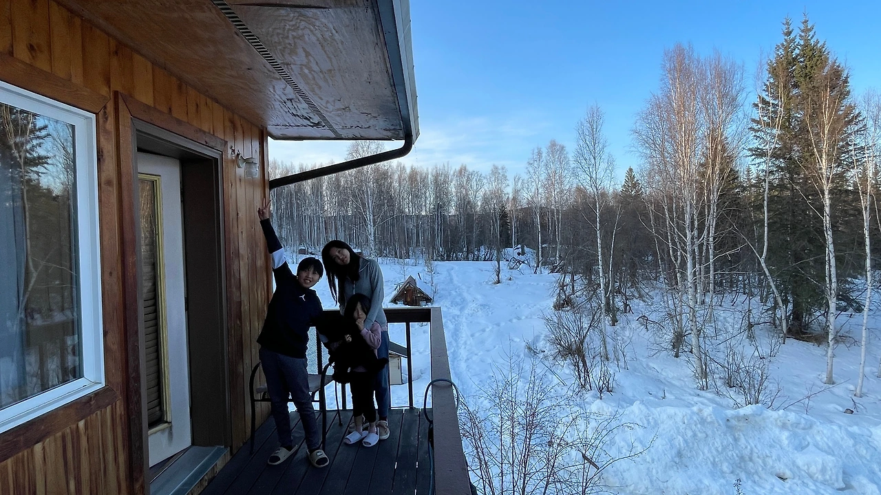오늘의 숙소인 산장에 도착했습니다. 통나무로 만든 산장이었는데 운치 있고 좋았습니다. 알래스카 산중에 통나무 산장이라, 꿈을 꾸고 있는 것 같았습니다. 어느 동화책에서 본 듯한 눈 내린 산장의 모습이었습니다. 실내 인테리어도 안락한 느낌이었습니다. 이곳에는 개가 2 마리 주인과 함께 지내고 있는데 순하고 귀여웠습니다. 혹시 모를 개에게 물릴 수 있는 사고의 염려 때문인지 개들의 송곳니가 모두 반씩 잘려 있었습니다. 불쌍한 마음이 들었습니다.