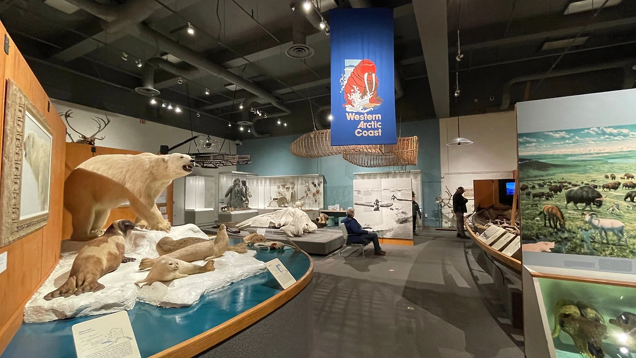 University of Alaska 내에 위치한 Museum of the North 자연사 박물관에 다녀왔습니다. 건물 자체가 알래스카의 빙하를 연상시키더군요. 살짝 누런 색을 띠는 흰색과 빙하의 모양처럼 끝이 날카롭거나 구부러진 형태가 말이죠. 실내의 건축 모양에서도 알래스카의 자연을 느낄 수 있었습니다. 건축가가 정말 알래스카를 사랑하고 알래스카를 대표하는 건축물을 만들고 싶어 했구나 느낄 수 있었습니다. 들어가자마자 볼 수 있는 천장에 달린 북극 고래의 뼈는 정말 어마어마했습니다. 모비딕이 저 천장에 매달린 고래만큼 컸을까요. 고래는 그 거대한 크기 때문에 보는 사람에게 공포와 함께 정복욕을 불러일으키나 봅니다. 박물관에는 이밖에도 정말 다양한 것들이 전시되어 있었습니다. 에스키모인들이나 원주민들의 문화, 알래스카의 야생동물들, 예전에 그 지역에 살았던 공룡들과 자연환경 등이 잘 전시되어 있었습니다.