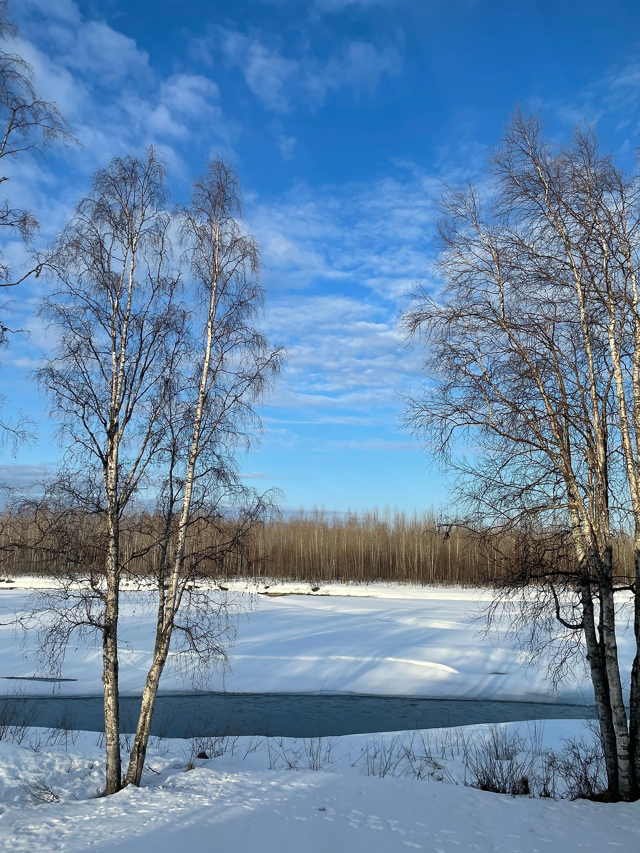 알래스카에서 마지막 밤을 Talkeetna 지역의 너무너무 예쁜 통나무 산장인 Sustina river에서 묵게 되었습니다. 숙소에 들어오자마자 향긋한 통나무 냄새와 깔끔한 인테리어도 좋았지만 가장 좋았던 것은 창밖으로 보이는 실개천이었습니다. 정말 영화에서나 볼 수 있는 아름다운 설경에 함성이 터져 나왔죠. 해가 지기 전에 한 번이라도 창밖 풍경을 더 보고 싶었습니다. 그래서 창가에 놓여있는 의자에 앉아서 시간을 보냈습니다. 이런 아름다운 풍경을 아무렇지도 않게 바라볼 수 있는 여유는 언제 생길까요. 이런 풍경을 내가 언제 또 볼 수 있을까 하는 생각에 조바심이 났습니다.