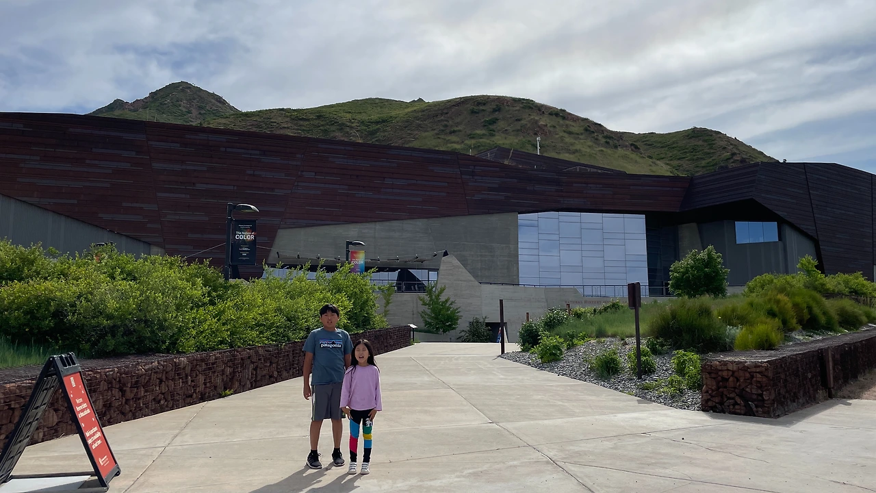 다음 날 아침 첫 일정으로 솔트 레이크 시티에 있는 유타 자연사 박물관(Natural Museum of Utah)에 도착했습니다. 주변 경관을 해치지 않는 나무와 회색돌로 조합된 외관의 건물이었습니다. 특히 둥근 뒷산이 건물을 안고 있는 듯 포근한 느낌이 들더군요. 건물과 자연과의 조화를 염두에 둔 건축가의 섬세함이 돋보였습니다.