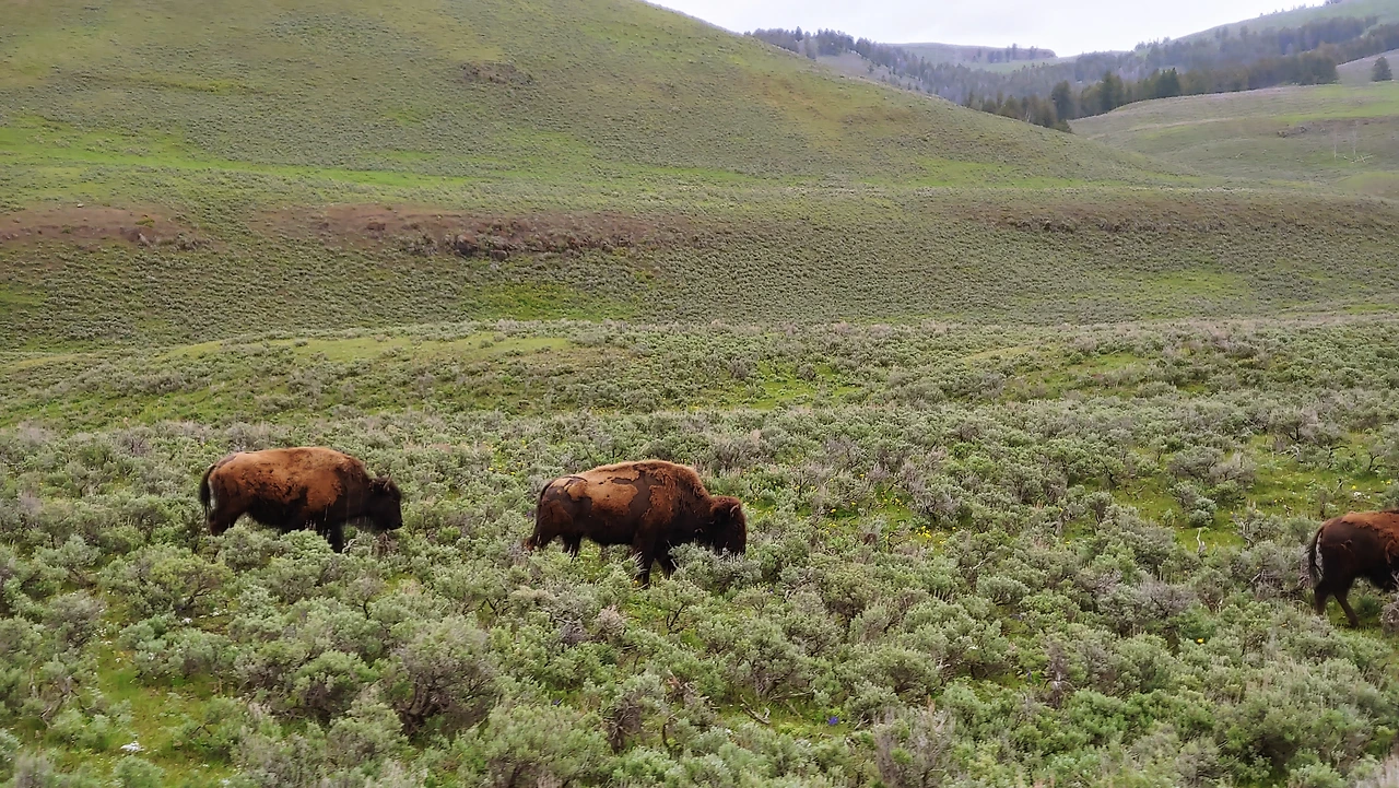 다음 날 아침 우리는 옐로스톤 국립공원 안으로 다시 들어왔습니다. 아침부터 드넓은 초원에는 바이슨들이 무리를 지어 다녔고 멀리서 곰도 볼 수 있었죠. 이곳은 말 그대로 야생동물 천국입니다. 한적한 그 풍경들을 보고 있노라면 이곳의 평화가 저의 마음으로 옮겨 오더라고요. 스트레스 없이 살고 있는 것 같은 이곳 동물들이 참 부러웠습니다.