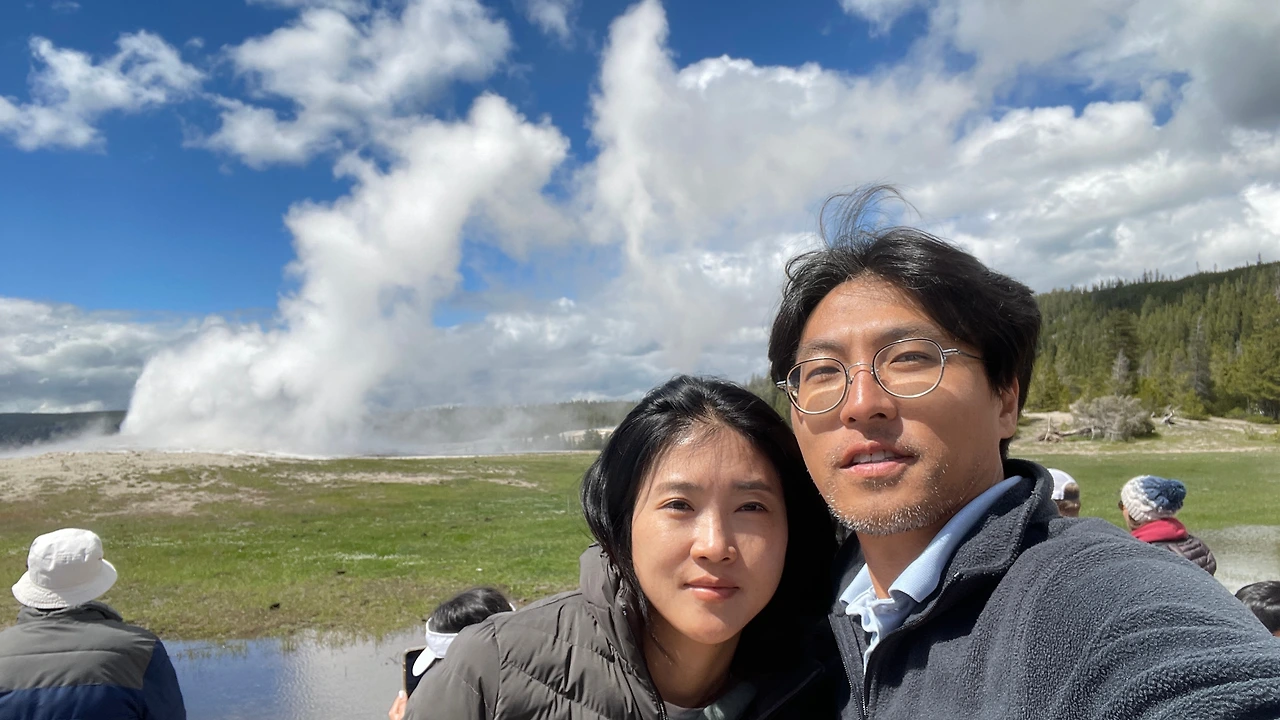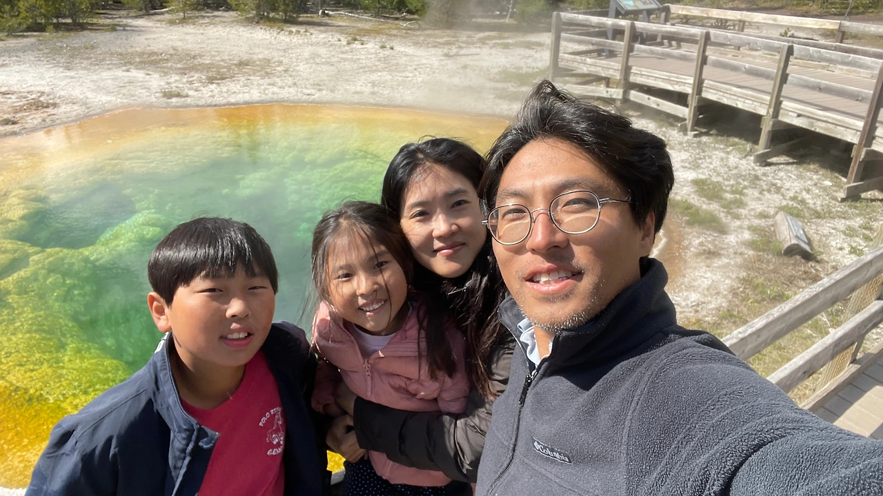 그 유명한 Old faithfulGeyser에 왔습니다. 옐로스톤 국립공원하면 사람들이 많이 떠올리는 곳이죠. 이곳에서 가장 유명한 간헐천입니다. 우리 가족은 이곳에 도착하자마자 한 번, 그리고 벤치에 앉아 30분 정도를 기다린 후, 이렇게 두 번의 온천수 분출을 보았습니다. 듣기로는 예전에는 더 높이 물줄기가 솟아올랐는데 점점 그 높이가 낮아지고 있다고 하더군요. 지구도 그 기력을 점점 잃어가나 봅니다.