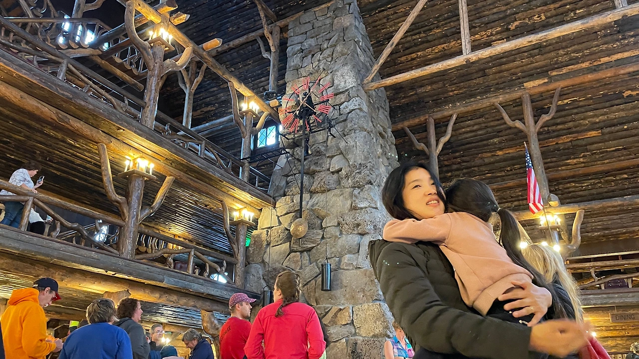 이곳 옐로스톤국립공원에서 가장 유명한 Old Faithful Inn에 왔습니다. 이곳은 1904년 통나무와 석재로 지어진 여관 2층입니다. 우리는 이곳에 들어가서 2층에 앉아 건물도 구경하고 선물 가게에서 기념품도 사면서 시간을 보냈습니다. 역시 통나무로 지어진 이 여관 안에는 오래된 의자들을 그대로 두었습니다. 손이 닿을 수 있는 곳마다 반질반질 기름을 칠한 것 같았습니다. 대중의 손길이 물건을 파괴하지 않고 더 아름답게 만들 수 있구나 싶었습니다. 새로운 것보다 옛것을 고수하는 미국인들의 고집도 느껴졌습니다. 미국의 역사가 고스란히 느껴지는 장소였습니다.