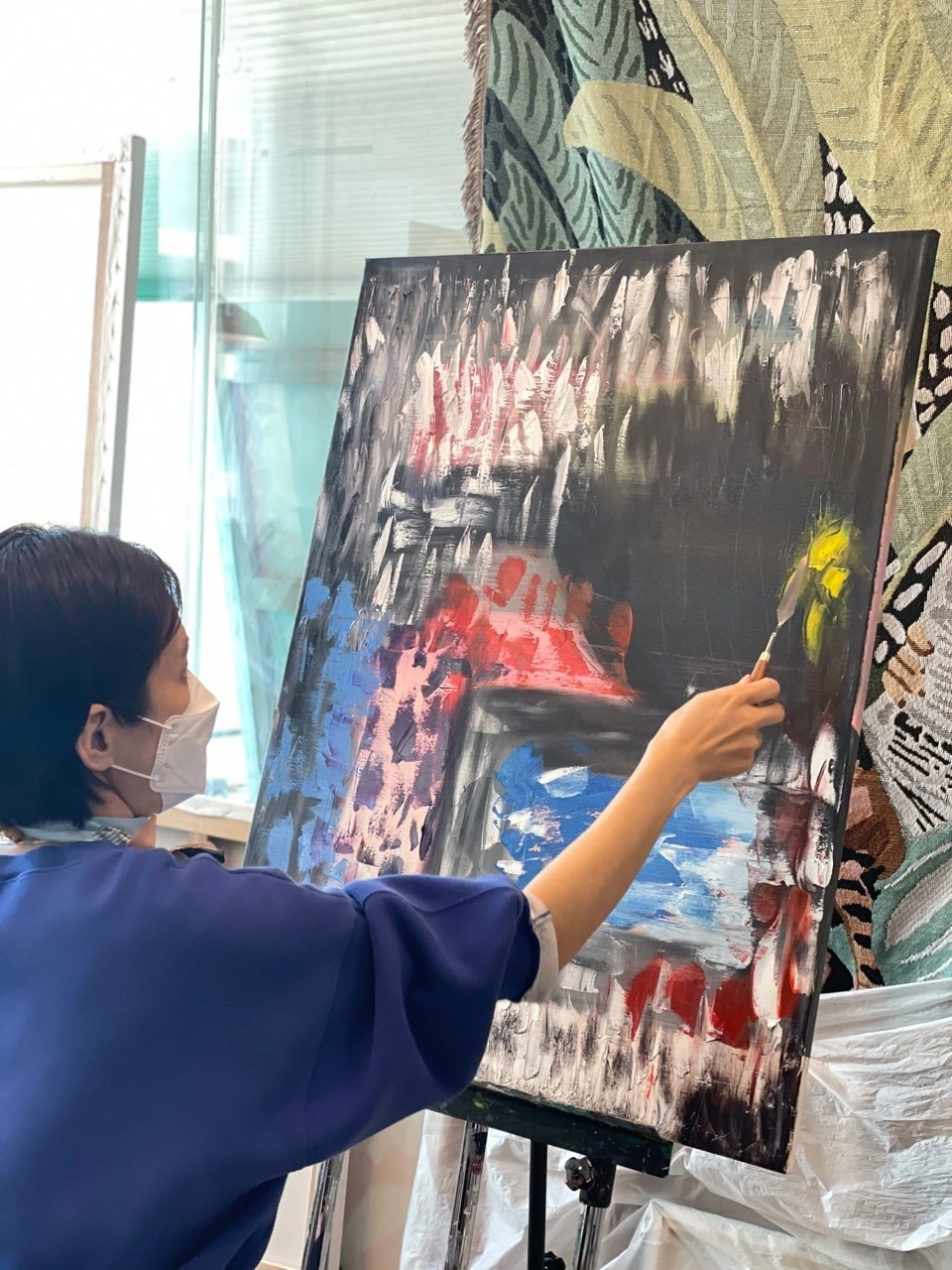 첫 시간부터 너무 의욕이 넘친 나머지 여러 가지 색과 다양한 기법 등을 캔버스에 마구 쏟아부었다.