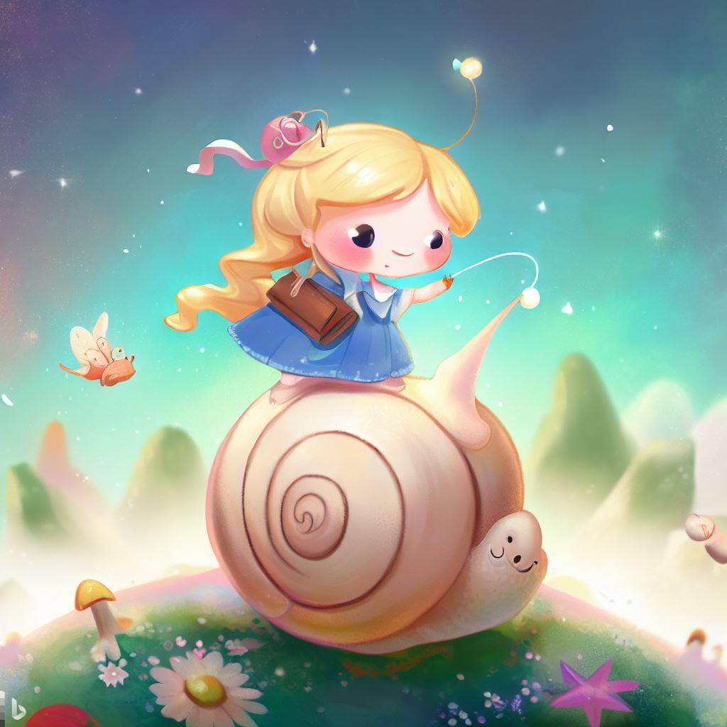 아기 달팽이는 예쁜 여자 아이에게 말합니다.