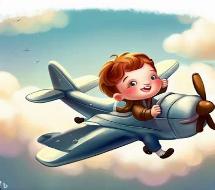 아이는 장난감 비행기를 타고 아름다운 풍경을 보았습니다.