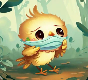 (마스크에 발이 꽁꽁 묶인 아기 새는 '엄마~ 아빠~' 하고 소리 내어 울었습니다.)