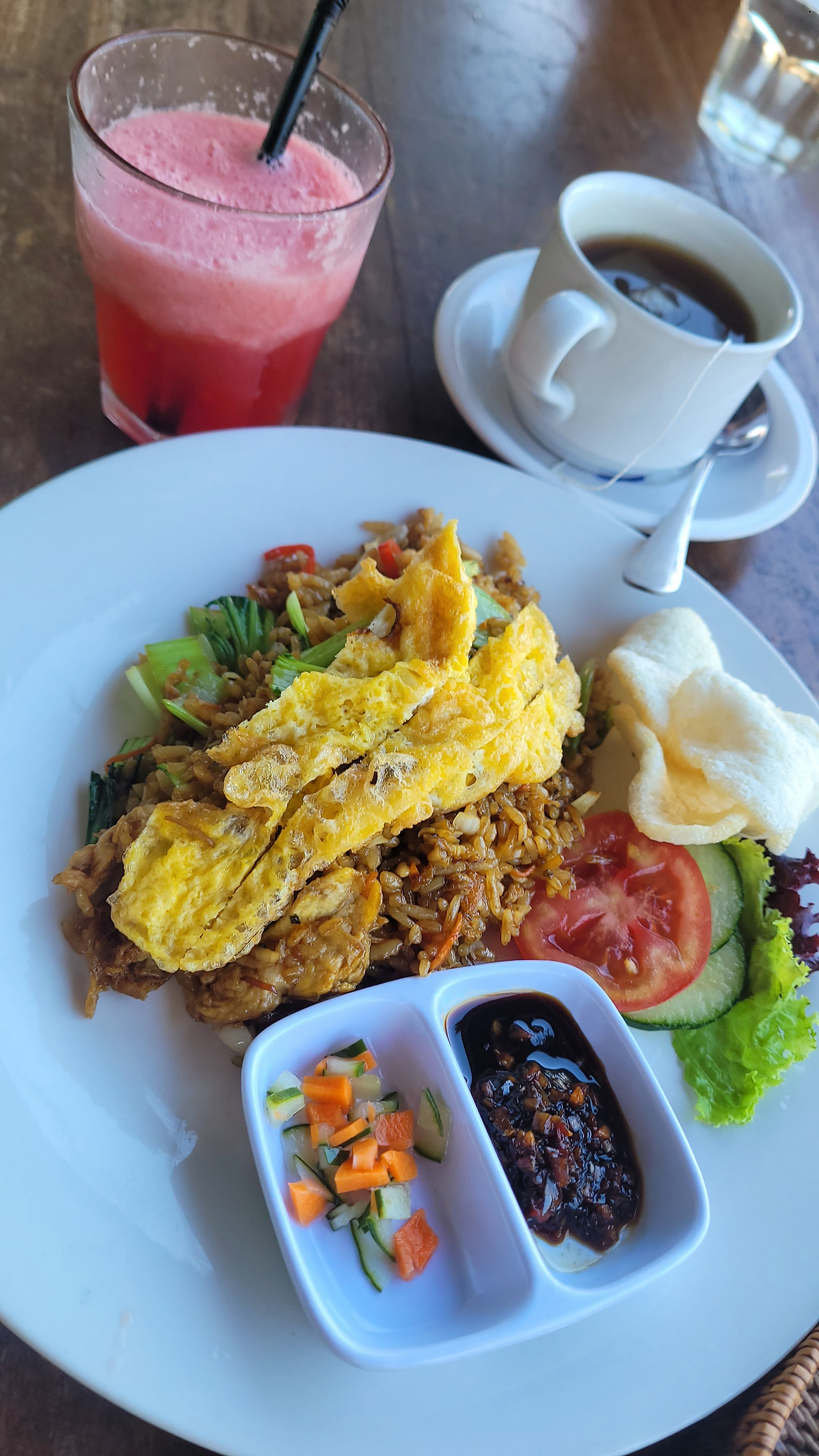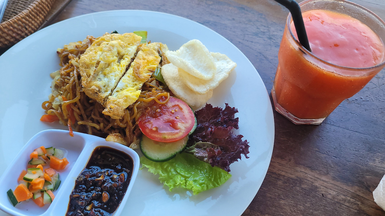 믿어지지 않지만 이 가격에 조식이 제공된다. 간단하지만 꽤 맛있었다. 친구는 나시고랭이 짜다고 했지만.