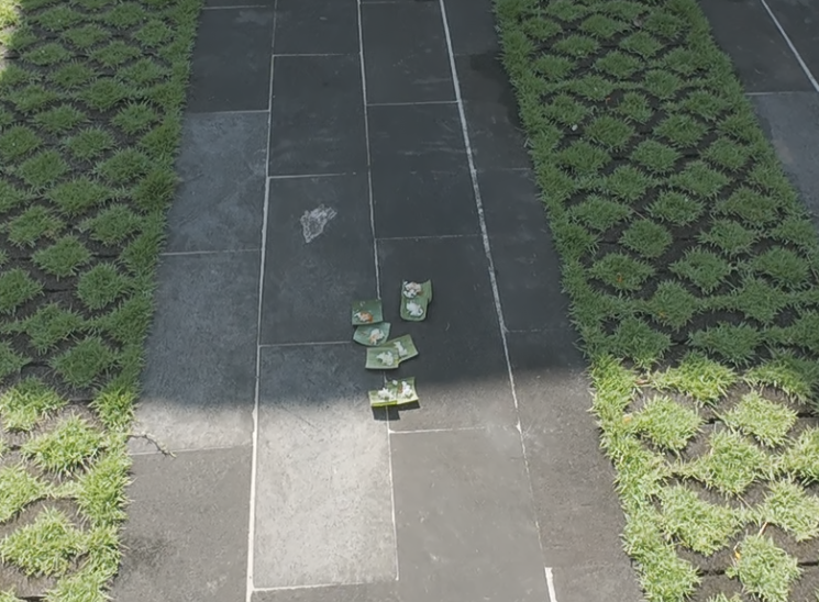우리가 묵은 숙소의 사당 같은 곳에는 작은 잎 위에 밥알만 잔뜩 놓아두었던데, 이건 사이반이라고 부른다.
