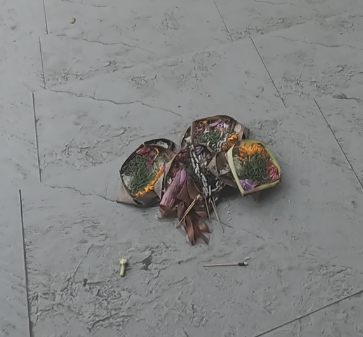 숙소로 돌아오는 길, 길바닥이나 길가의 간이 사당 같은 곳에 발리 주민들이 제를 올린 작은 바구니들이 흔히 눈에 띈다.