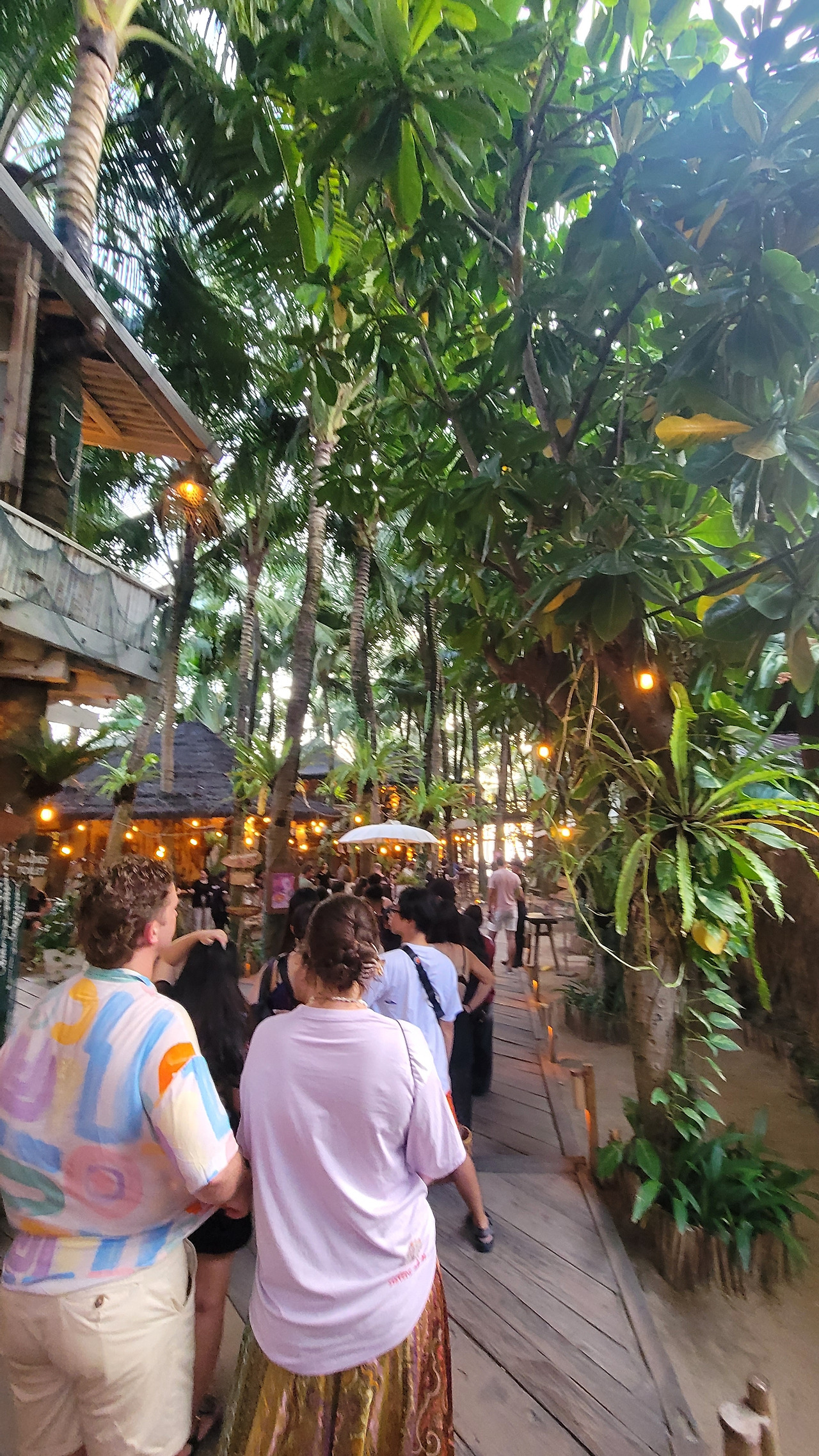 자리를 맡으면 그 금액만큼 술이나 음료를 주문해서 먹을 수 있지만, 둘이서 다 먹기는 금액이 크기 때문에 보통은 오픈챗이나 카페에서 동행을 구해서 나눠낸다. 그날 라브리사엔 홈스테이 투숙객들끼리 방갈로 하나를 통째로 빌린 것 같은 다국적 모임도 있었다. 보통 그렇게 동행을 구하는 건 20~30대고, 40대 중반 여자 여행객이 동행을 구한다는 글에는 아무도 댓글을 달지 않은 걸 보면 동행을 구해서 잘 맞으면 서로 친목도 다지는 게 목적인 듯하다.