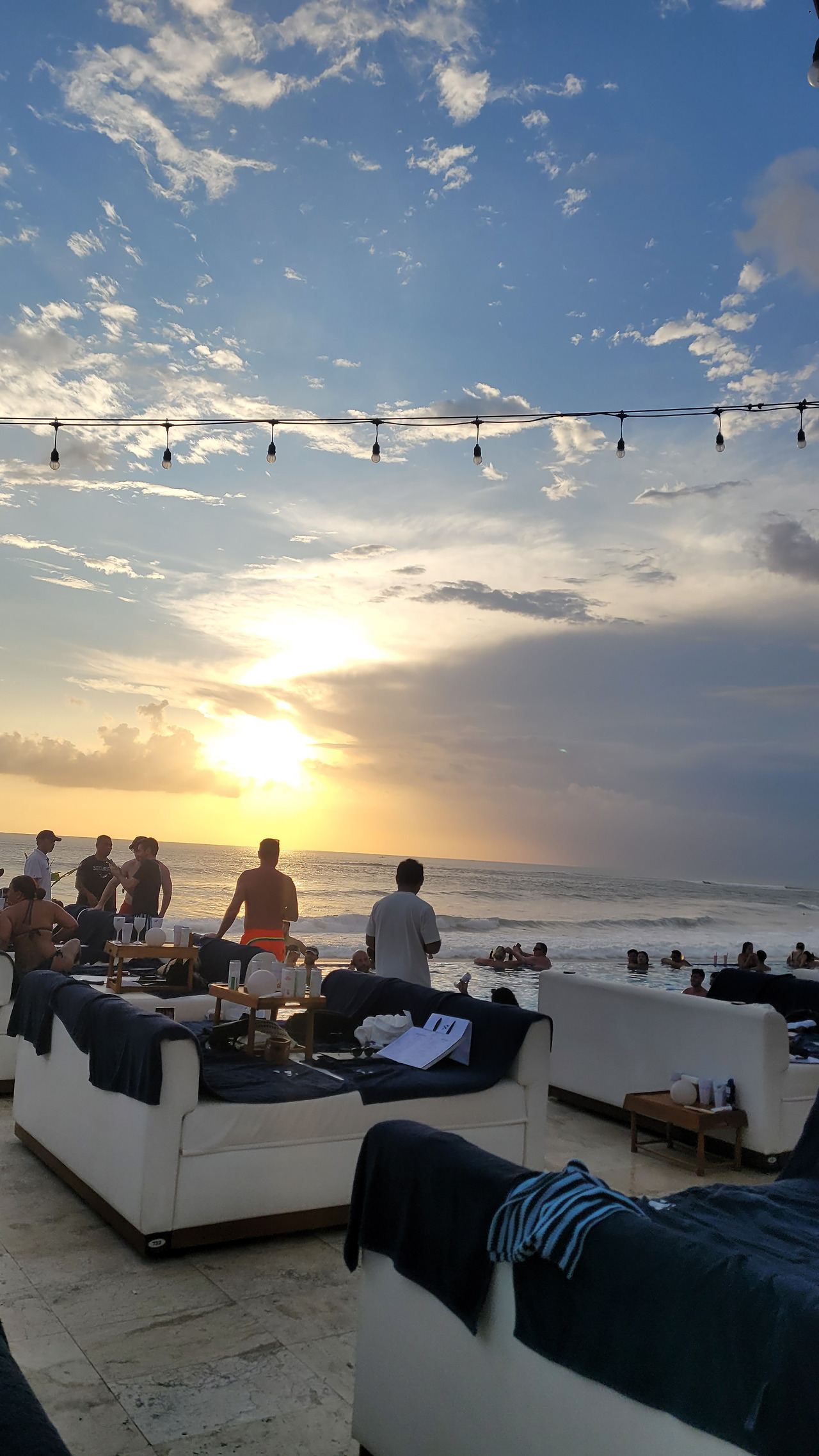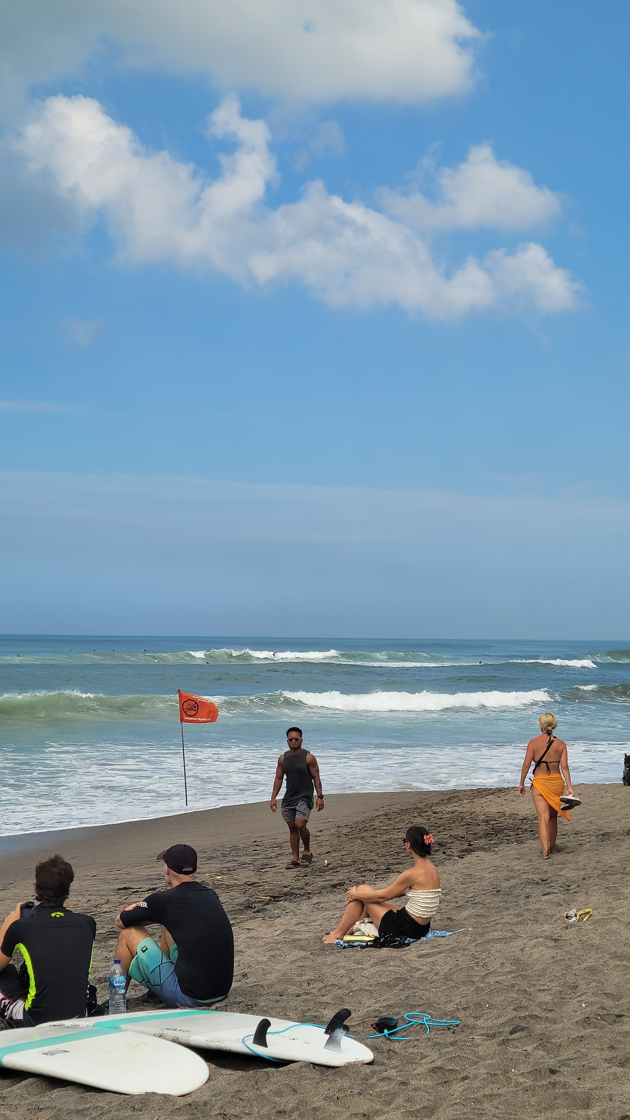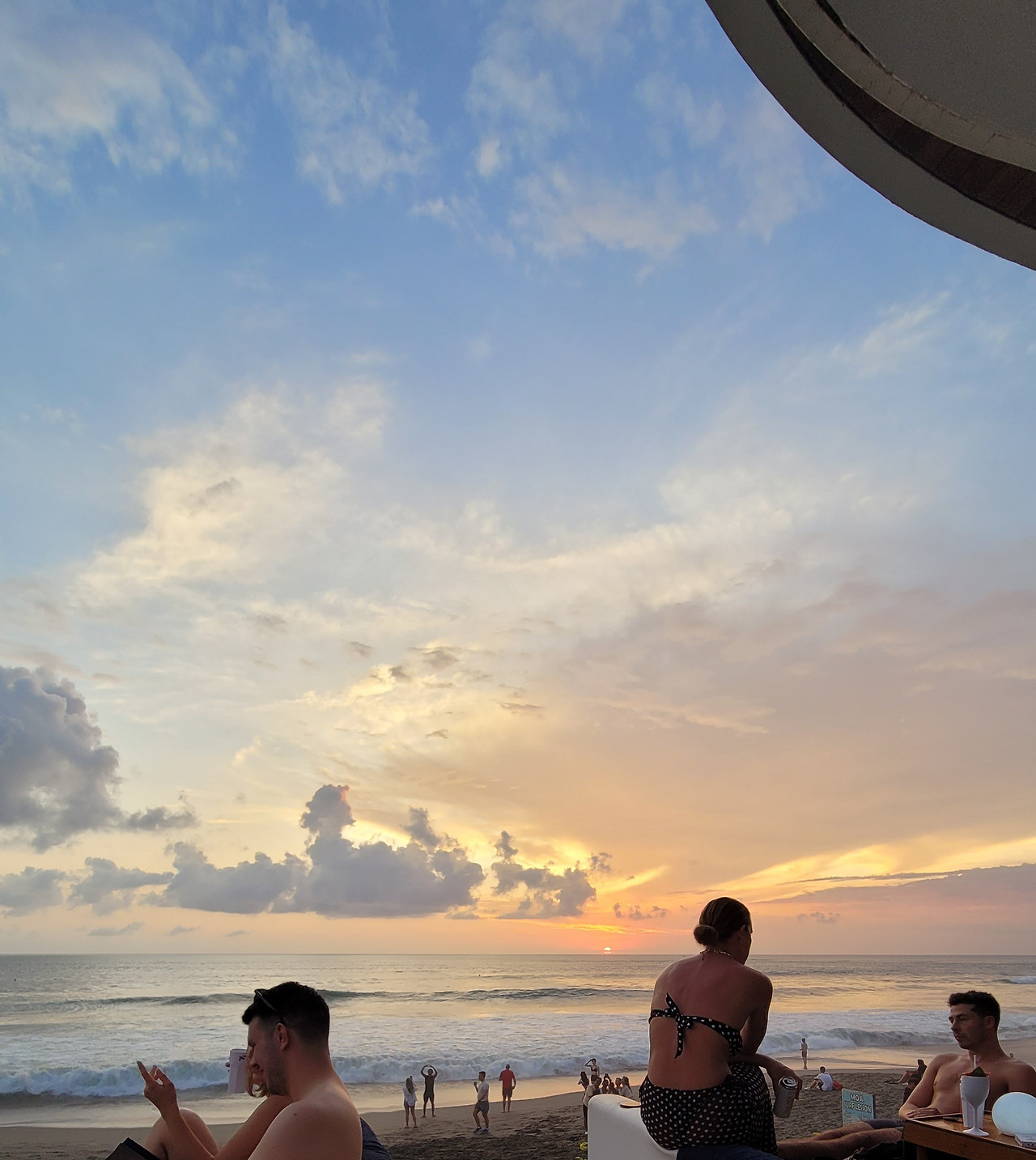 내 앞쪽 파라솔 2개는 현지인 서퍼들, 그리고 그들과 친해진 몇몇 서양인들이 떼로 몰려 있었는데, 이 사람들이 끊임없이 담배를 피워대서 수시로 연기가 날아와 목이 아팠다. 아무리 야외라곤 해도 이렇게 지척에서 여러 명이 계속 담배를 피우니까 간접흡연을 피할 길이 없네. 와룽 쪽은 그래도 식당이라 이 정도로 줄담배를 피는 손님은 많지 않은 것 같은데....