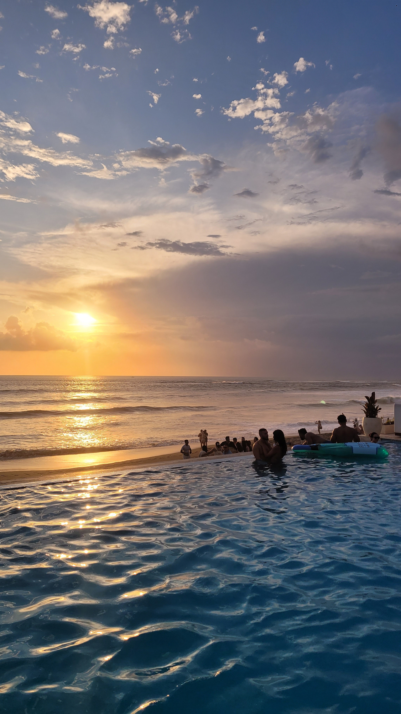 숙소 수영장에서 바닷물을 씻어낼 겸 한동안 수영하고 놀았다. 차차는 태닝 하면서 꿀잠을 자는 바람에 앞부분은 푹 익었는데 뒤쪽을 제대로 못 태웠다며 30분 정도 수영장 옆 베드에 엎드려 누워 있다가 오겠다 한다.