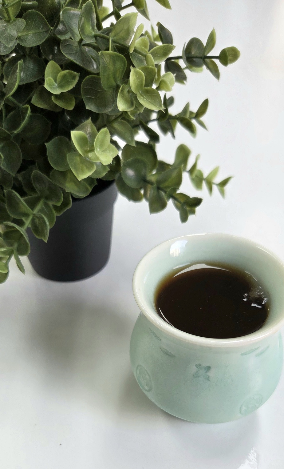 영롱한 녹색의 잔 안에서 밝은 갈색으로 빛나는 저의 스페셜티 커피를 보자면 이것이 커피가 물성을 가지고 가장 아릅답게 내 앞에 현현한 형태구나 하는 경이감이 듭니다. 너무 자의적인 표현이 아니냐고요? 어쩔 수 없습니다, 그것이 관능의 영역이니까요ㅎㅎ