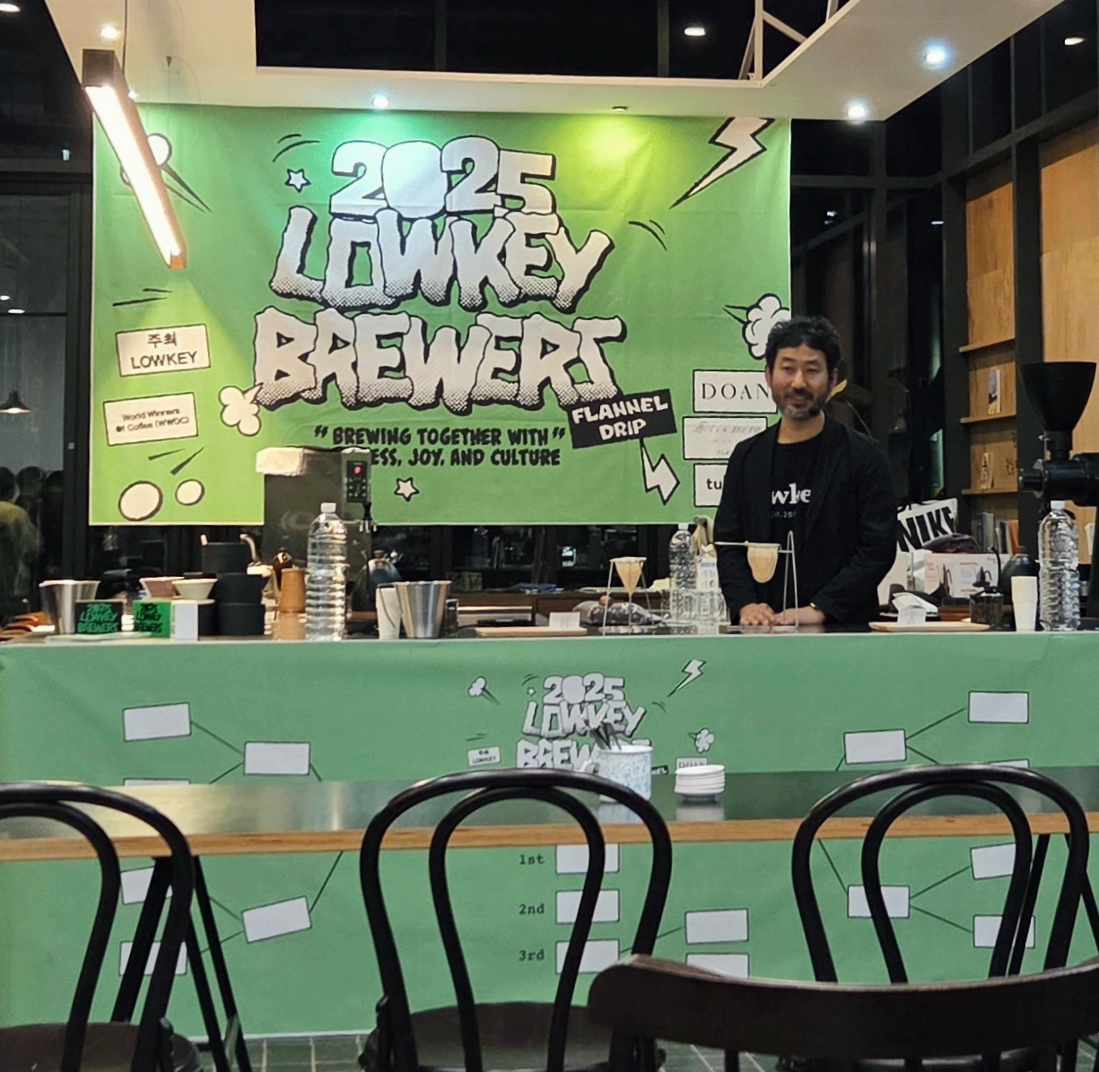 로우키 브루어스 컵은 제가 경험하지 못한 대회였어요. 자유롭게 마련된 좌석, DJ가 믹싱하는 BGM, 한 편에 즉석 드로잉이 이뤄지는 스크린, 리프레쉬 랩과 함께하는 목테일까지 그야말로 축제 현장 이었습니다!