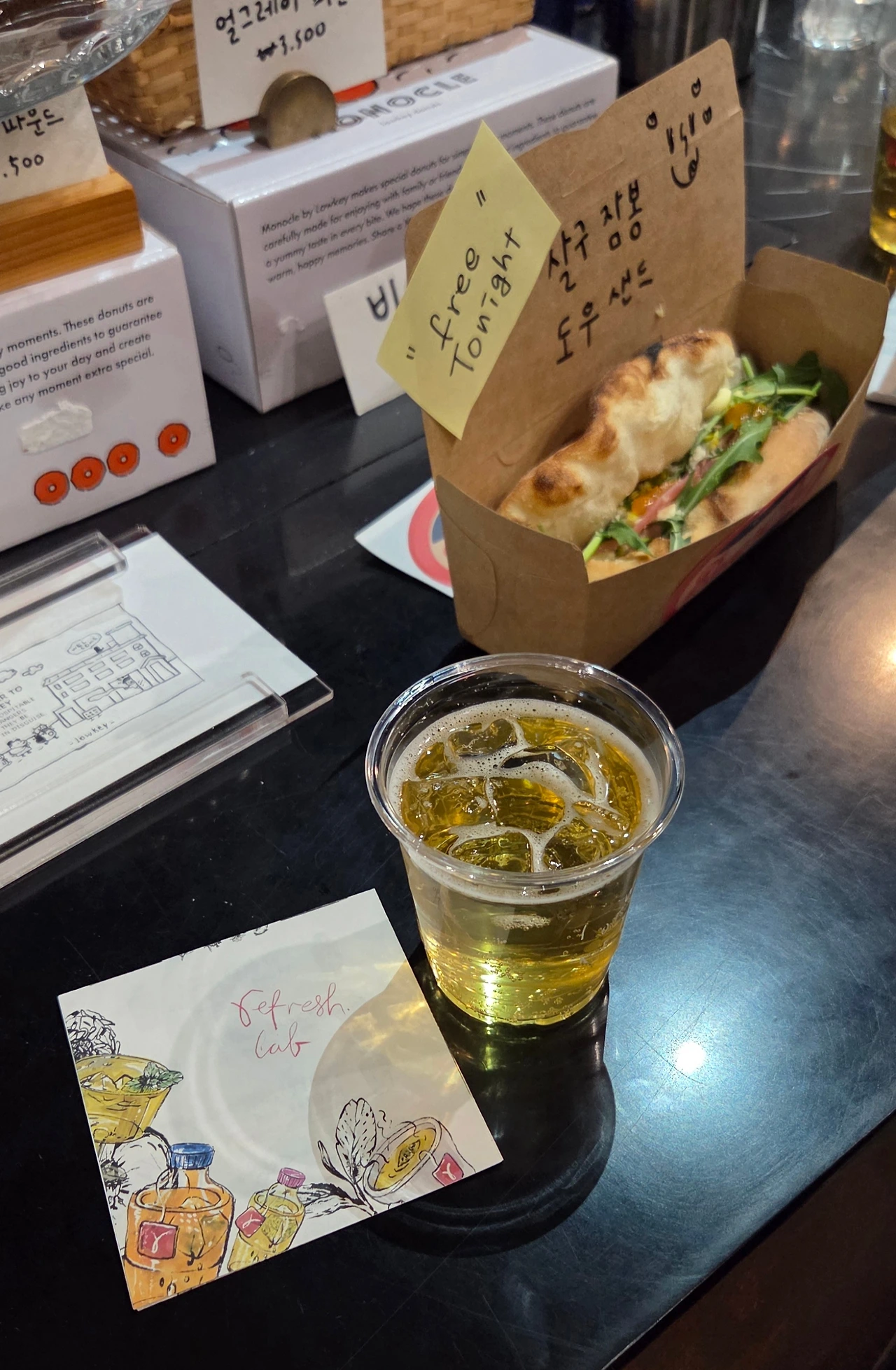 평범한게 장점인 직장인이라 ‘파티’라고 이름 붙인 무언가에 참석한 일도 오랜만이었는데요. 일단 연희 도우클럽의 잠봉샌드와 리프레쉬 랩의 웰컴 드링크가 너무 맛있었고요ㅎㅎ 장소가 익숙한 헤이그라운드 로비여서 그런지 편안했어요.