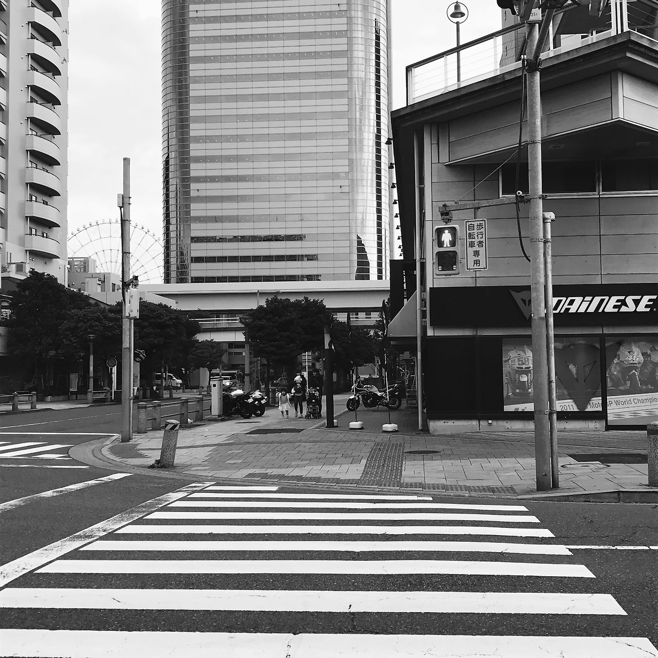쉴 틈 없이 굴러가는 자동차 바퀴와 바쁜 걸음들 사이로, 하얗게 그어진 횡단보도의 평행선들이 언뜻 비쳤다.