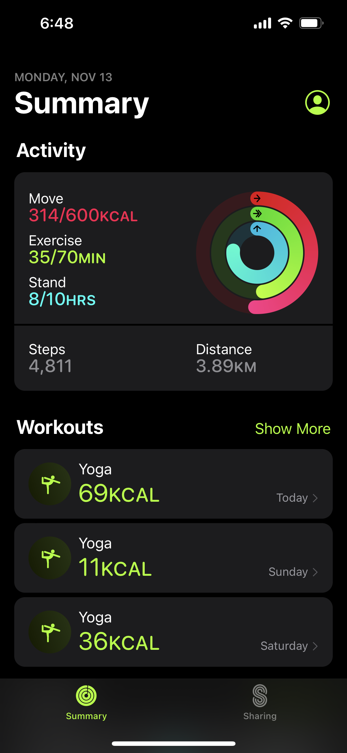 공유를 하고 어느날 친구인 깨굴의 칼로리가 0인걸 보고 놀라서 카카오톡으로 물어보았다. ‘종일 누워서 넷플릭스를 봤다’고 한다. 애플워치도 풀어놓고. 하하하. 공유가 이런 것이었구나.