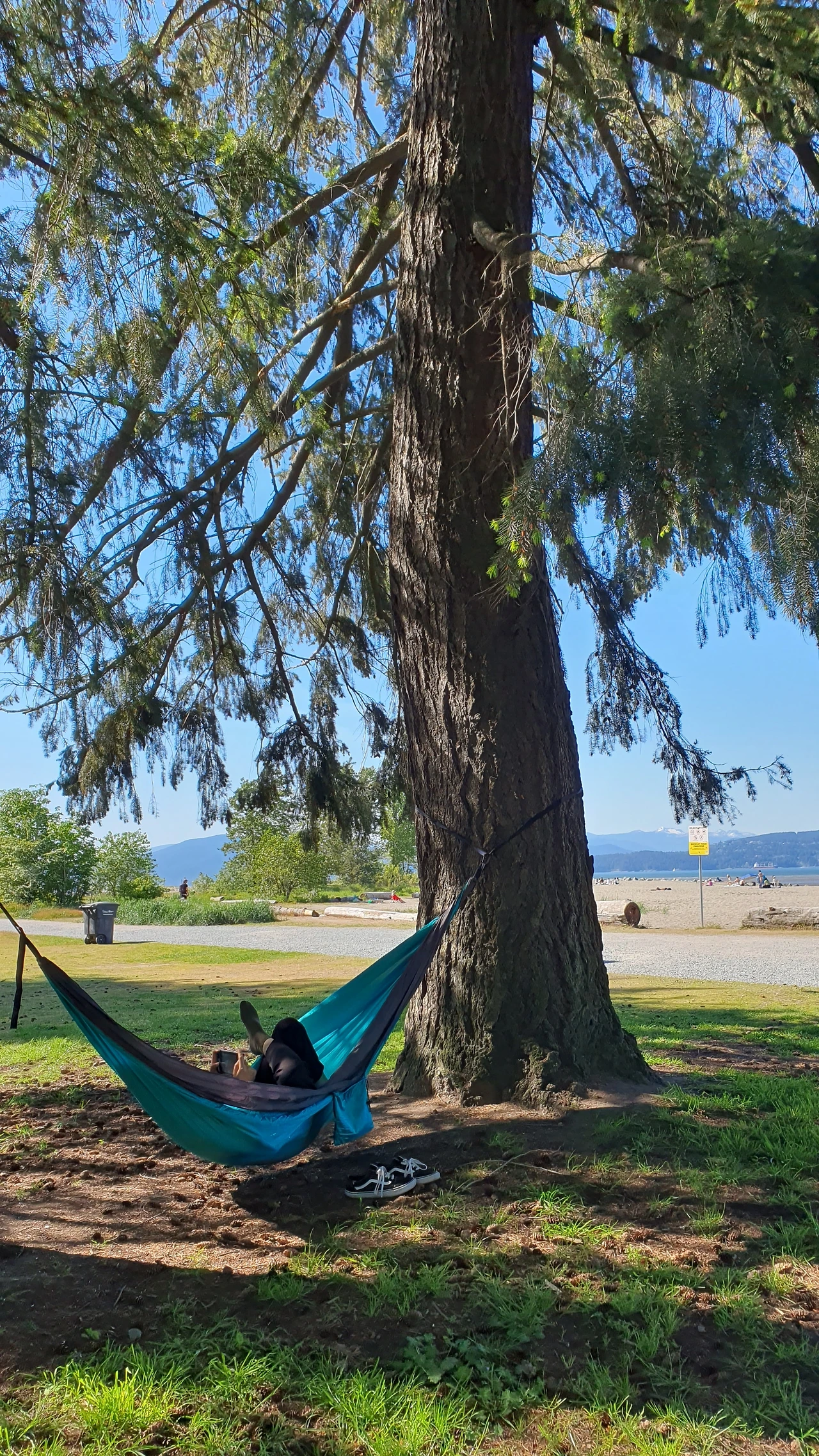 몸이 다 굳어 처음 걸을 땐 허리도, 골반도 너무 아프고 숨이 차 20분도 채 걷지 못했다. 그래서 밴쿠버 이곳 저곳을 놀러다니지는 못하고, 집에서 걸어서 30분 거리인 강아지 해변(스패니쉬 뱅크 비치)까지 차를 타고 가서 느리게 걸었다. 일주일에 몇 번씩 걸어가 강아지들이 마음껏 바다에 첨벙 첨벙 뛰노는 모습을 구경하던 그곳은 여전히 아름다웠다. 초록 버드나무와 잔디, 너른 하늘과 바다. 행복한 표정의 커다란 개들. 나의 일상이던 이 곳에 간만에 오니 너무나 특별한 풍경이었고, 심지어 바닷가의 통나무에 가만히 앉아 노을 진 하늘에 해가 넘어가는 것을 감상할 수 있는 일몰 명소였다.