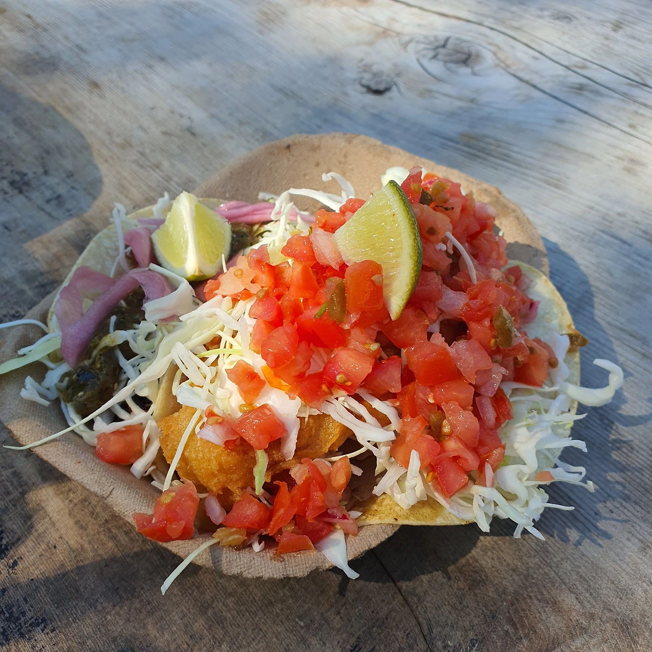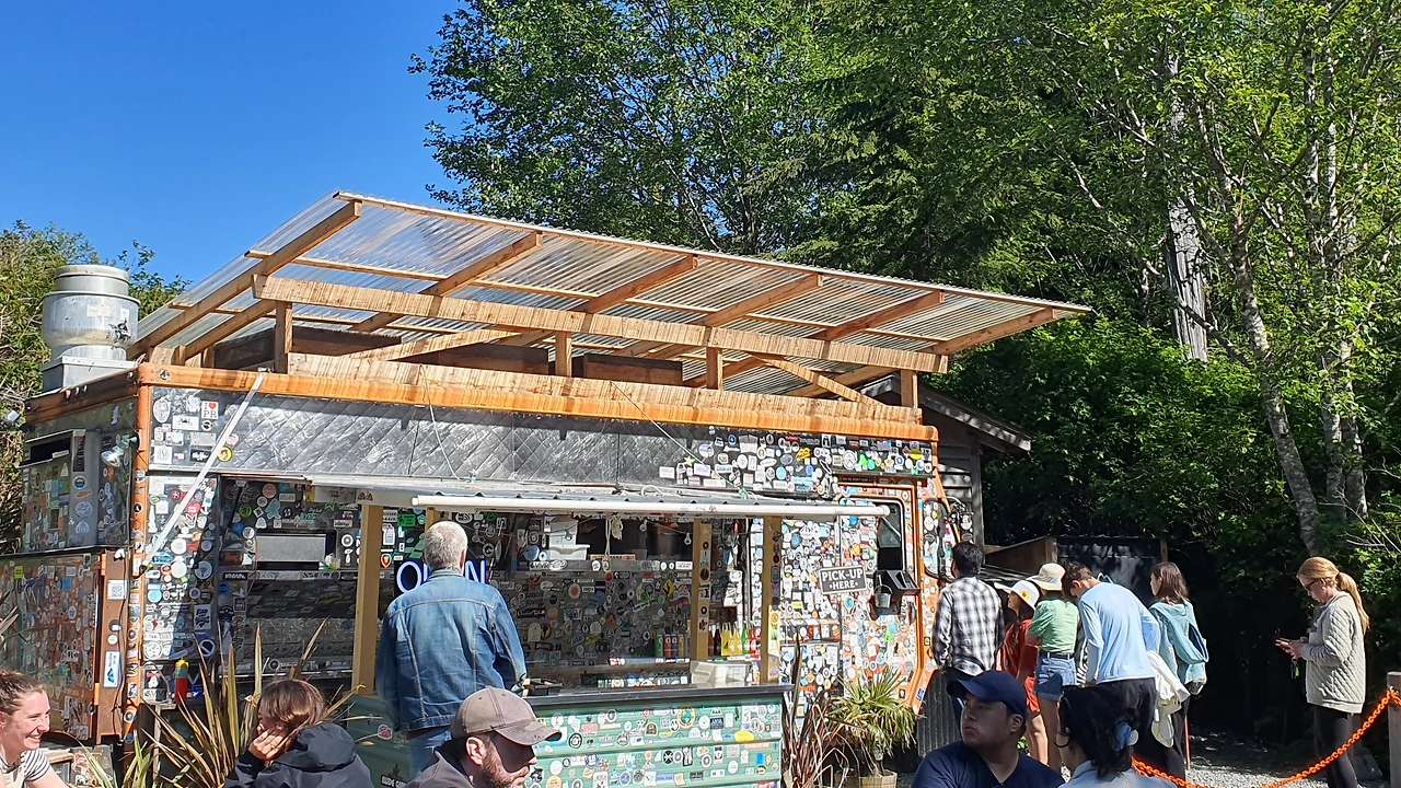 햇빛을 많이 받아서인가 나른해서 낮잠을 자고 일어나 토피노 다운타운으로 갈 준비를 했다. 올라가는 길에는 아주 아주 유명한 타코 푸드트럭 '타코피노'에 들르려고 예약 주문도 했다. 팬데믹 기간동안 많은 가게들이 온라인 픽업 주문을 도입해서 여행 다니기 편리하다. 구불구불한 길을 달려 도착한 타코피노엔 이미 많은 사람들이 음식을 기다리고 있었다. 우리는 시간을 잘 맞춰와서 도착하자마자 음식을 받을 수 있었고 테이블에 앉아 피쉬타코와 포크 타코를 먹었다. 얼마나 맛있기에 사람들이 한두시간씩 줄 서서 먹는걸까 궁금했는데 생선 튀김이 들어간 피쉬타코가 바삭하고 부드럽게 맛있어서 이 많은 사람들이 기다리는게 이해가 되었다. 알록달록한 푸드트럭도 생동감 넘치고. 여행지에서 즐겁게 간식을 먹을만 한 곳이다. 기다림 없이 먹었으니 더 좋고!
