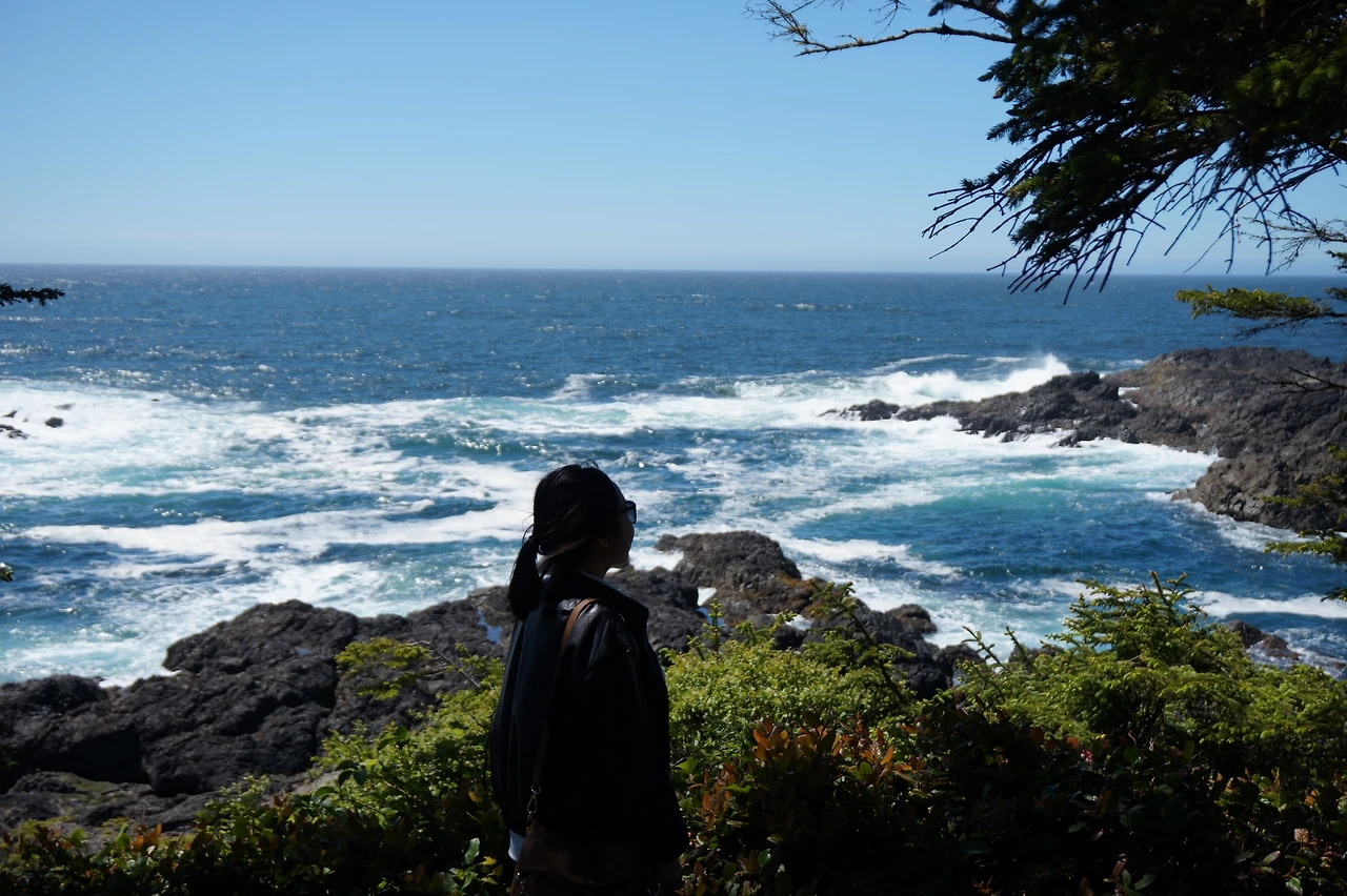 맛있게 점심을 먹고 끝없이 펼쳐진 태평양 바다를 보며 걸을 수 있는 와일드 퍼시픽 트레일의 등대를 보러 갔다. 차에서 내려 조금 걷자 눈 앞에 빨간 지붕의 작은 등대가 나타났다. 소박한 등대 뒤로 펼쳐지는 새파란 바다, 가리는 것 하나 없이 펼쳐진 수평선, 시원하게 부서지는 파도에 속이 시원했다. 밴쿠버 바다는 파도가 잔잔한데 서핑의 성지라는 토피노 바다의 넘실대는 파도는 또 다른 매력이 있다. 산이나 섬으로 가려지지 않는 바다와 하늘이 좋아 바닷길을 따라 걸었다. 몸이 가뿐하지 않아 느리게 걸었지만 이런 바닷길에서는 느려도 괜찮다. 그렇게 한껏 태평양 바다를 눈에 담고 숙소로 돌아와 조금 쉬었다.