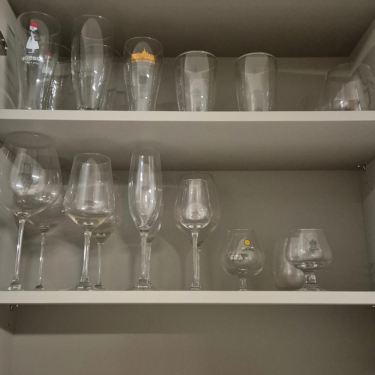 주방 수납에는 10잔도 넘는 와인잔들이 크기 별로(레드와인잔, 화이트와인잔, 스템리스 잔, 샴페인잔), 머그컵, 도자기 잔, 주스 마실 때 쓰던 잔, 물 마실 때 쓰던 잔 등이 빼곡했다. 코렐의 밥그릇과 국그릇, 도자기 소재의 밥그릇과 국그릇과 반찬접시들, 한 때 부지런히 모으던 빈티지 코렐 접시들, 양식에 어울리는 검은 색 도기 접시, 오븐에 들어갈 사각 접시, 동그란 접시 네모난 접시, 길쭉한 접시 등등.. 무늬 없는 하얀 색의 코렐 세트로 2년을 모든 끼니를 해먹으며 지내다 와서 보니 우리가 가지고 있던 식기에 놀랄 수 밖에. 물론 요리가 취미이기는 하지만 말이다.