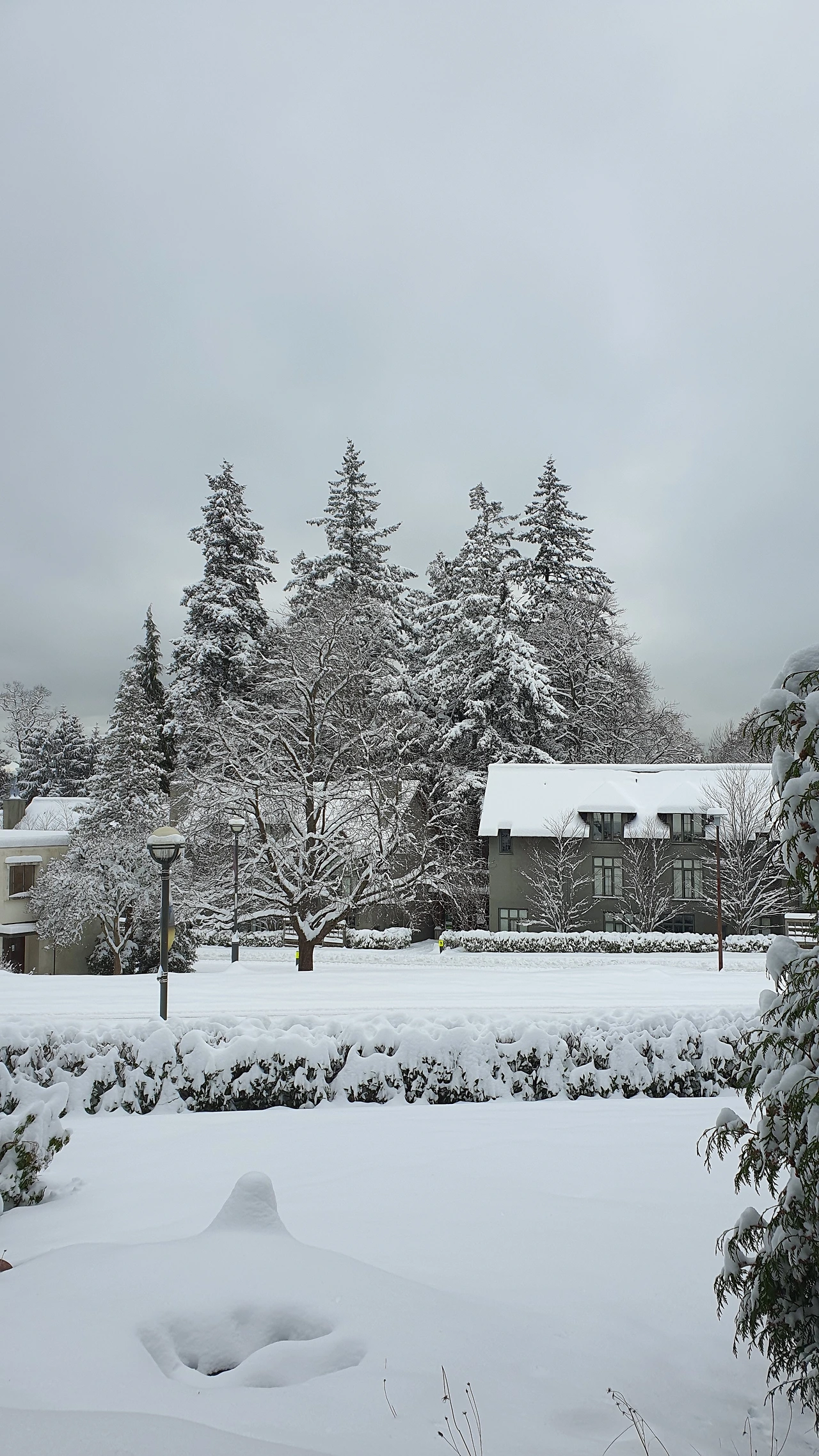 단독주택 처럼 생긴 이 기숙사는 현관을 열면 바로 밖이다. 문을 열고 나가니 눈이 무척 많이 쌓여 있었고 발을 디디니, 발목 위로 눈이 올라왔다. 이런 눈은 실로 오랜만이라서 신이 나 걸었다. 눈을 밟으면 한번에 푸욱 빠지지 않고 도도독 하면서 무게마다 얼은 눈의 층이 걸리며 발이 내려앉았다.