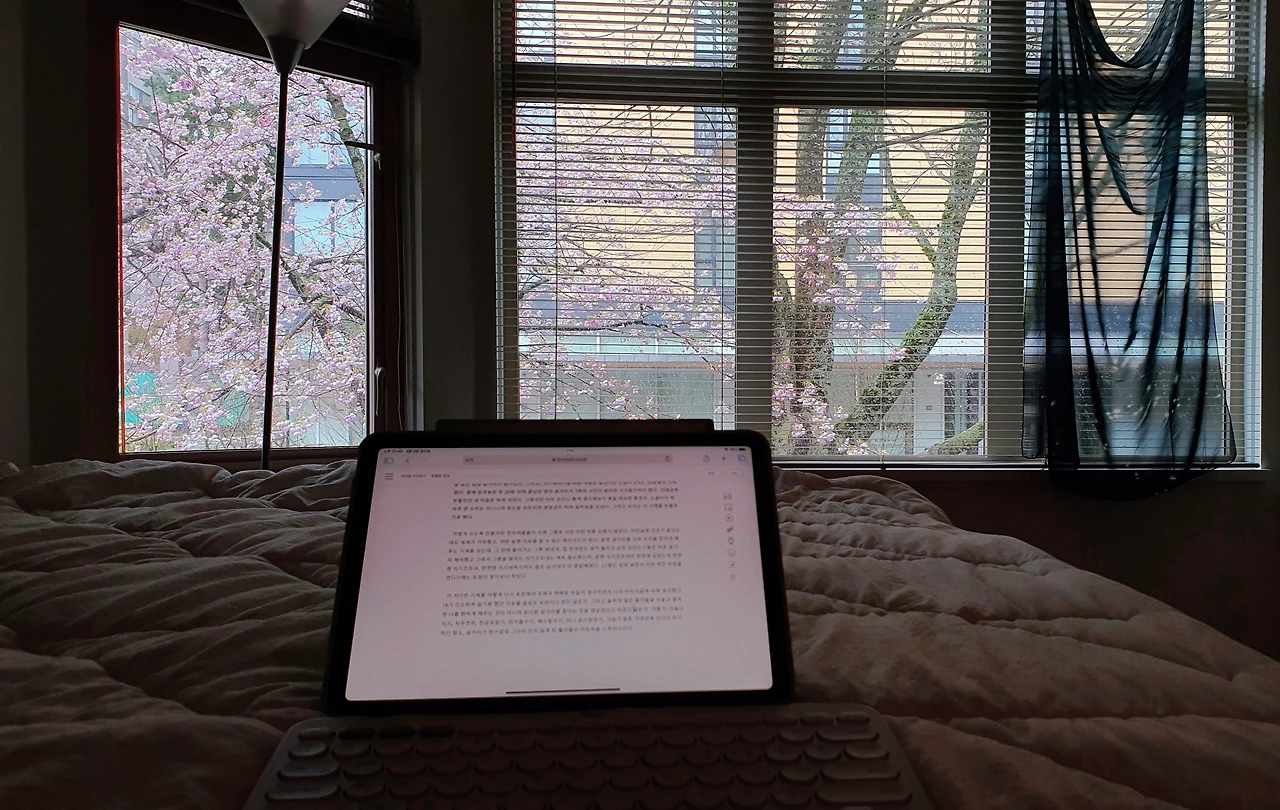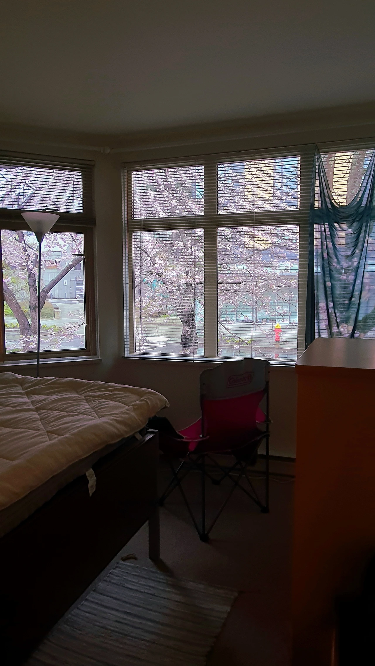 침대만 있는 방에 의자가 하나 있었으면 좋겠는 참에 겨울이라 안쓰고 있던 캠핑 의자를 닦아서 창가에 두었다. 창문 앞 나무가 벚나무였다는 사실을 꽃망울이 맺히고서야 알았고, 2층 창문 밖의 벚꽃이 만개하기를 기다리며 책도 읽고 글도 썼다. 그러니까, 해외살이 중 이사를 계속 하며 천천히 미니멀라이프의 길에 들어서는 중이었다는 말이다.