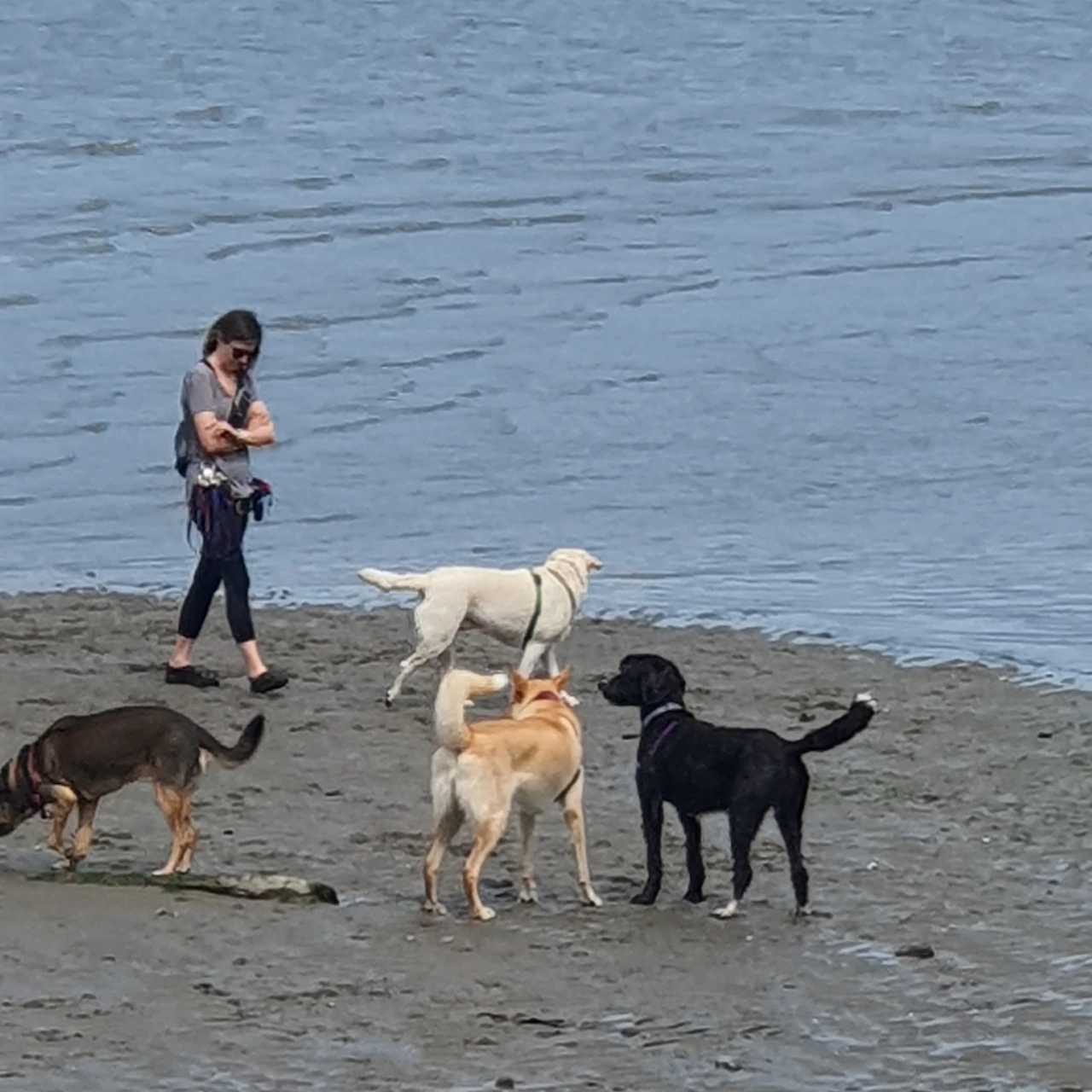 이 시간에 나는 그저 하얀 모래밭 한귀퉁이에 서있거나, 통나무 위에 앉아 그 모습을 바라본다. 캐나다는 반려견 문화가 오래되어 개가 아기일때부터 교육을 잘 시키기도 하고, 한사람이 여러마리의 강아지를 통제하면서 산책해야하는 전문 산책의 특성 상 주인이 생각할 때 문제가 일어날 일이 없는 강아지만 맡기기 때문에 대체로 내게 관심이 없다. 그저 자기들끼리 뛰놀뿐이다. 간혹 운이 좋으면 통나무 근처까지 냄새를 맡으러 온 강아지들이 내 손에 킁킁거리다가 쓰다듬어 주기를 기다리기도 한다. 그러면 길을 걷다 네잎클로버라도 발견한 것 같은 마음이 되어 강아지를 쓰다듬고 엉덩이도 토닥토닥 해준다. 한순간 아주 아주 행복해진다.