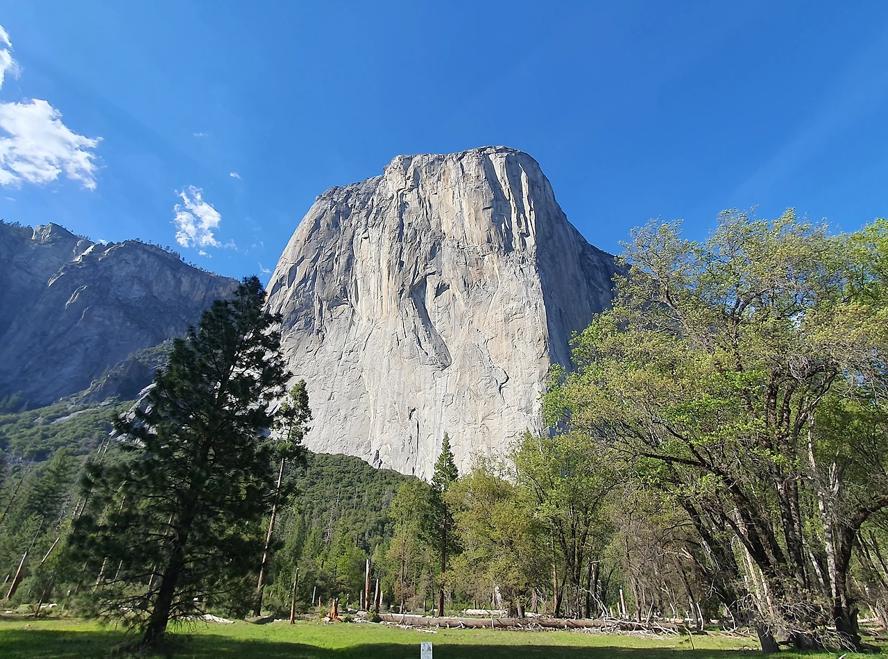 들뜨는 기분으로 금방 들어선 요세미티 국립공원은 홍수 경보가 내려진 곳답게 물이 콸콸 흐르고 있었다. 요세미티는 높고 세찬 폭포와 거대한 암벽으로 유명한데 눈이 너무 빨리 녹아 철철 흐르고 있으니 어디든 세찬 물소리와 시원한 공기가 우리를 맞아주었다. 고개를 들면 압도될만한 암벽들이 주위를 두르고, 고개를 아프도록 꺾어야만 위를 볼 수 있는 높고 강한 폭포가 떨어지는 풍경은 그것만으로도 멋지고, 세찬 폭포 아래에서 바람과 물방울을 맞으니 상쾌하고 즐거웠지만 내 눈길을 특히 끄는 것은, 실내에서 클라이밍을 하고 있는 것이 아니라 자연을 누리고 있는 암벽등반가들이었다. 요세미티에는 '엘케피탄(El Capitan)'이라는, 암벽등반가들의 꿈의 성지 같은 거대하고 희게 빛나는 매끈한 수직절벽이 있다.