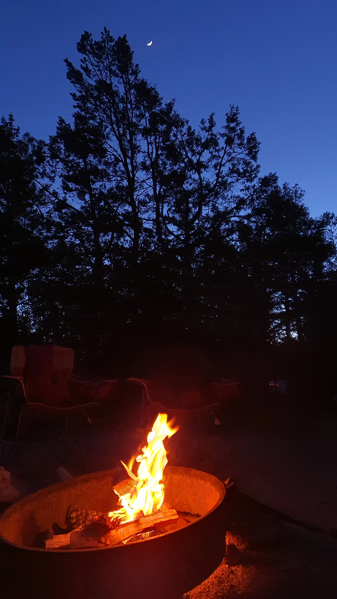 아름다운 풍경도 실컷 보고, 야생동물도 만나고, 성취감도 가득한 채 캠핑장 옆 마트에서 저녁거리와 장작을 사가지고 캠핑장으로 향했다. 더운 날 한참을 걸어 샤워를 하러 갔는데 샤워실 앞에 엘크가 두 마리 있었다. 이 무슨, 사파리도 아니고. 샤워실 앞에는 캠핑카에 물을 채울 수 있는 시설이 있는데 그곳에 늘 물이 고여있으니 엘크가 언제나 방문한다고 했다. 크고 멋진, 생각보다 근육질인 엘크를 구경하다 개운하게 씻고 산뜻한 기분으로 저녁을 먹으러 캠핑장으로 향했다. 그랜드캐년에서 캠핑이라니, 그 덕분에 시간 여유가 있어 트레일도 걷고 엘크도 보니 캠퍼가 된 게 새삼 좋았다. 이 곳은 전세계에서 손꼽히게 유명한 곳이라 그런지 캠핑장 시설이 꽤 좋았다. 샤워실도 깨끗하고 세탁기와 건조기도 있고, 마트도 무척이나 컸고, 김치마저 팔았다. 쾌적한 캠핑장에서 샌드위치와 컵라면을 먹고 나니 일몰 시간이 되었고, 해가 지자마자 쌀쌀해져서 장작에 불을 붙였다. 날씨도, 여행 중의 기분도 순조로워서 그런가 장작도 잘 탔다. 캠핑을 하다보면 불멍이 생각보다 어렵다는 것을 알게 되는데 건조한 날씨에 나무에 불이 잘 붙으니 불멍도 쉬웠다. 우리는 나파밸리에서 한 병 사온 와인을 따 마시며 책을 읽었다. 술을 딱히 좋아하지 않는 남편도 이 와인이 너무 맛있다며 좋아했고, 나야 원래 와인을 무척 좋아하니 행복해하며 초콜렛을 안주 삼아 먹었다. 그러는 동안 하늘이 어둠에 물들고 달과 별이 하나 둘씩 떠올랐다.행복이 여기에 있음을 정확히 느꼈다.