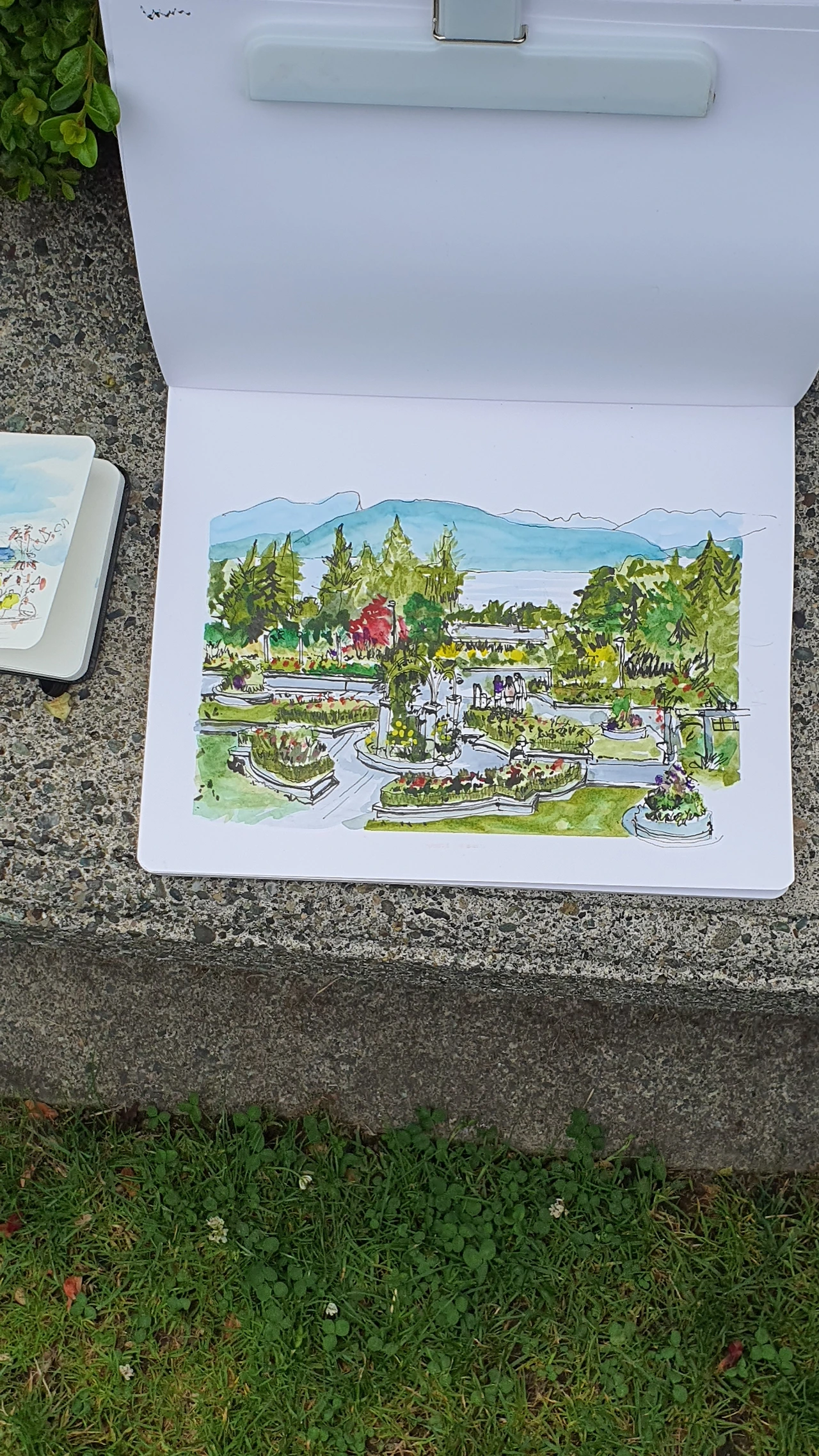 그러다 Meet up이라는 모임 어플에서 밴쿠버 어반 스케치 그룹을 발견했고, 다음날 오전에 걸어서 10분 거리에 있는, 내가 밴쿠버에 와서 처음으로 일몰을 보며 감탄했던 로즈 가든에서 스케치 모임이 열리는 것을 보고 바로 참가 신청을 했다. 지난 15년 동안 종종 어반 스케치를 하는 사람들의 글과 영상을 보기도 하고, 고궁이나 공원에서 함께 그림을 그리고 있는 사람들을 보며 나도 한번쯤 그런 모임에 나가보고 싶다는 생각을 했었는데 그 시작이 해외에서일 줄은 몰랐다.