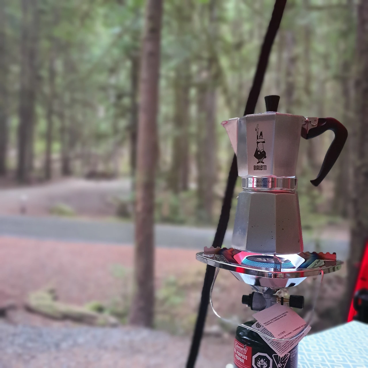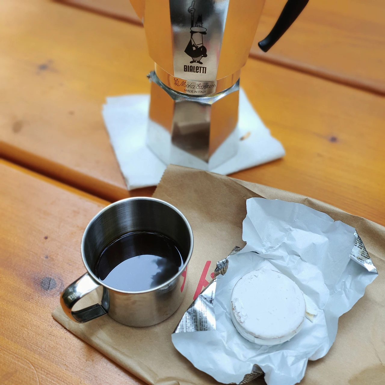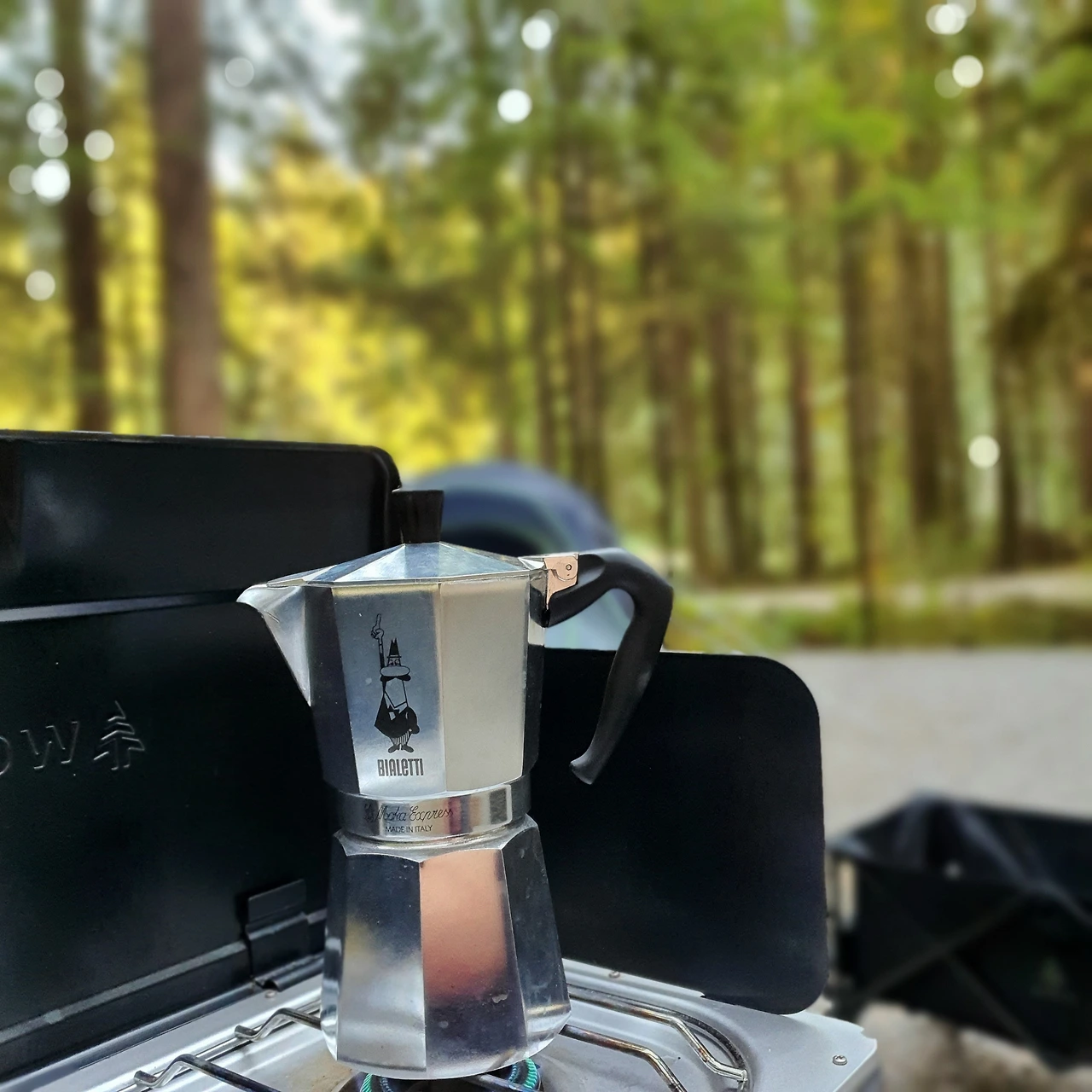 마지막으로 내게 중요한 점인데 캠핑 갈 때도 가져갈 수 있다. 드립백보다는 부피가 크지만 커피머신들보다 작고 물과 불만 있으면 되니까, 자연 속의 아침에 새소리를 들으며 커피를 내려 진하게 퍼지는 향을 맡는 호사를 누리기 쉽다. 예전엔 믹스 커피를 몇 봉 챙겼는데 물 끓이는 수고와 큰 차이도 없으면서 감성이 부족했다. 모카포트가 만들어 주는 아침의 캠핑장 분위기는 아름답다.
